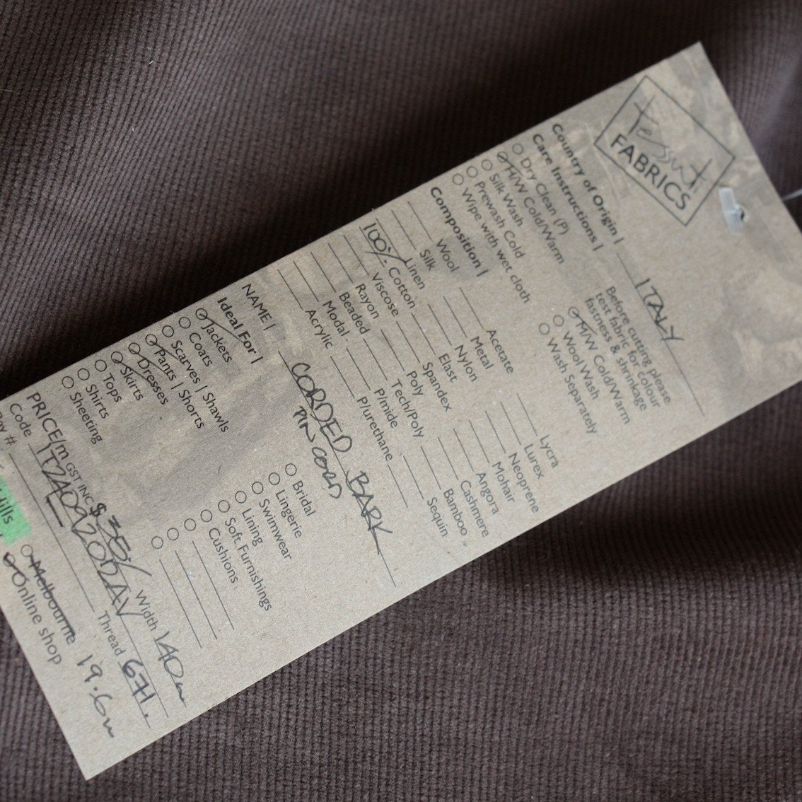 Corded Bark Pinwale Corduroy