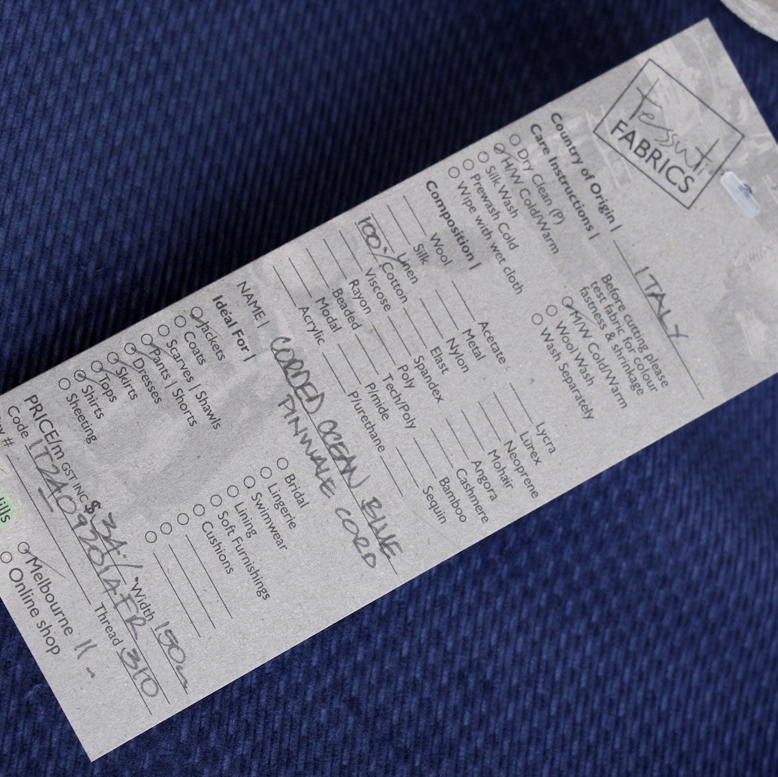 Due to their pile and sheen, corduroys can be difficult to photograph and represent with 100% colour accuracy. Please refer to the recommended thread for a good colour guide and if colour matching is required, we recommend purchasing a swatch before buying your fabric.