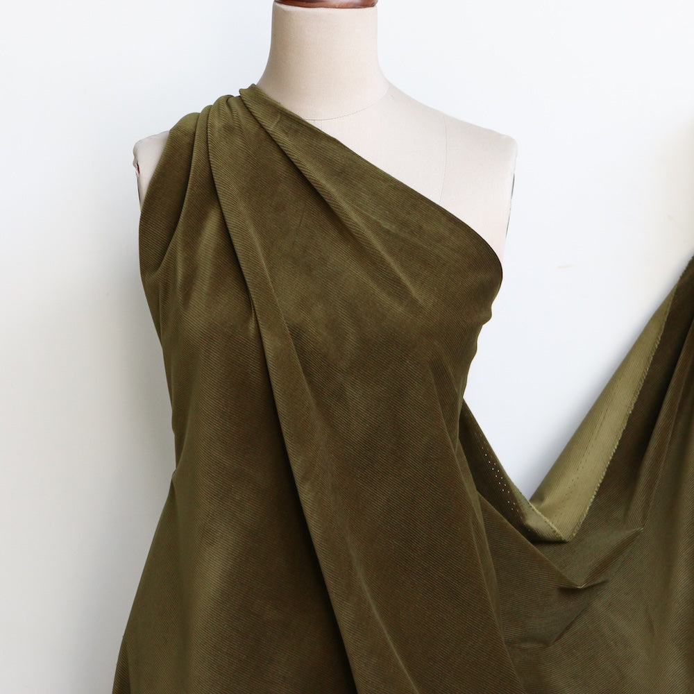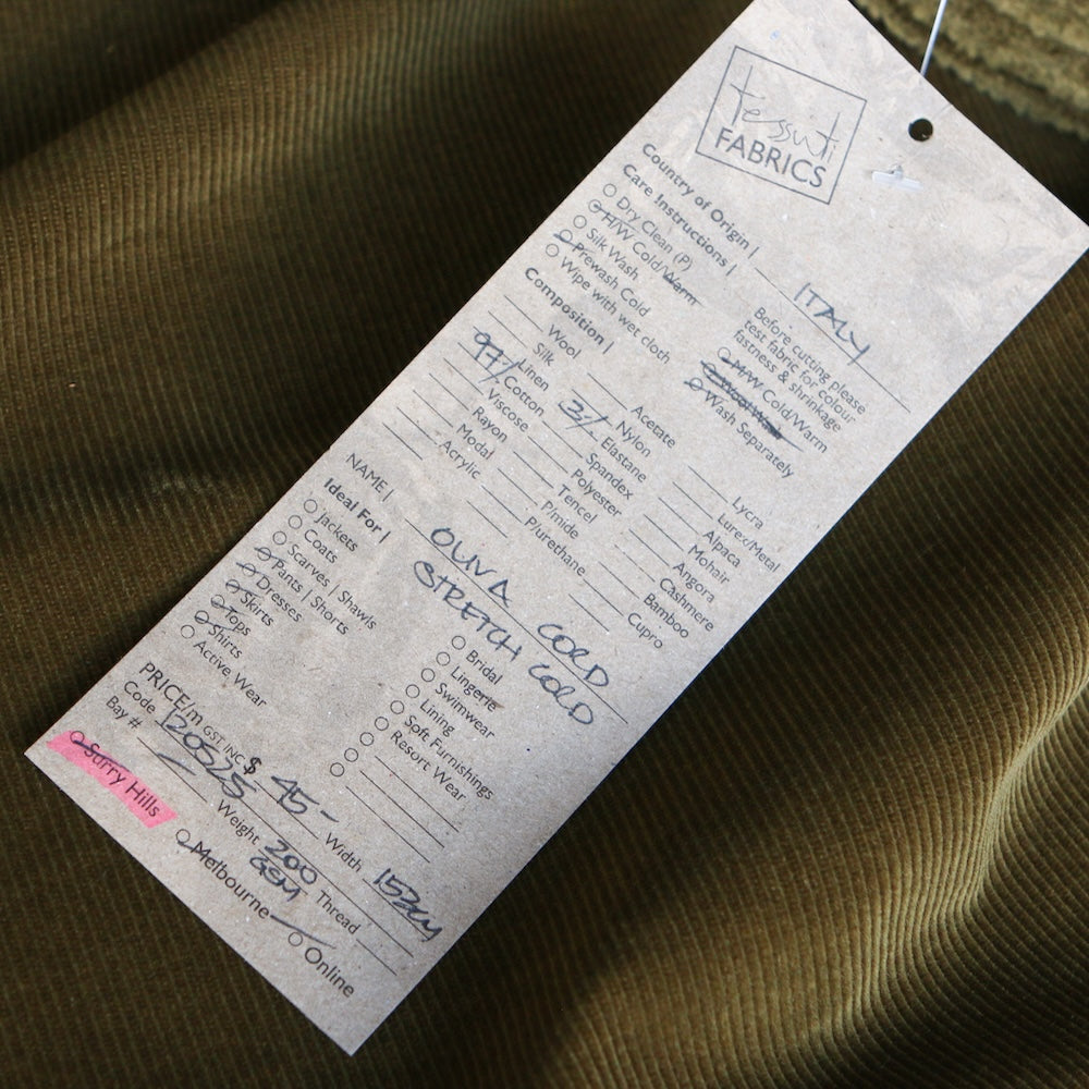 Italian olive green 97% cotton 3% elastane corduroy