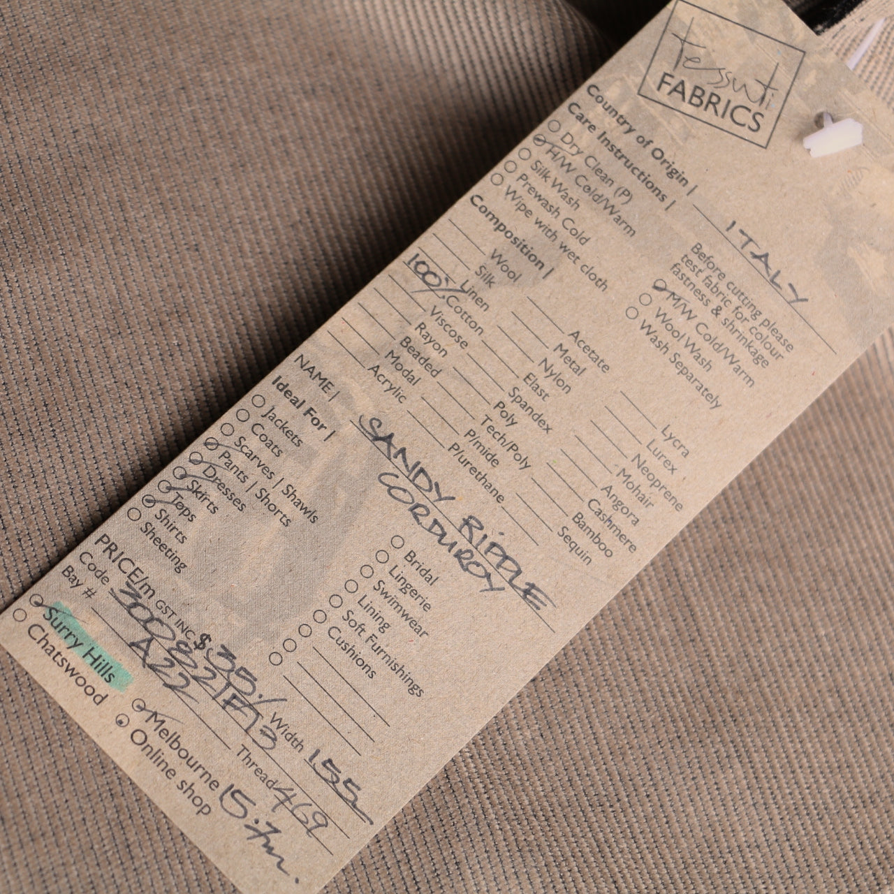Due to their pile and sheen, corduroys can be difficult to photograph and represent with 100% colour accuracy. Please refer to the recommended thread for a good colour guide and if colour matching is required, we recommend purchasing a swatch before buying your fabric.