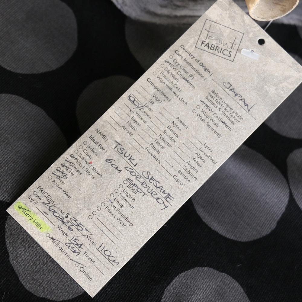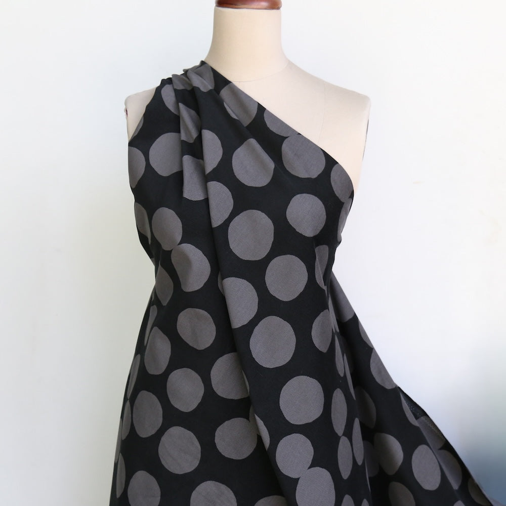 Japanese black/grey 6cm spot printed 100% cotton corduroy
