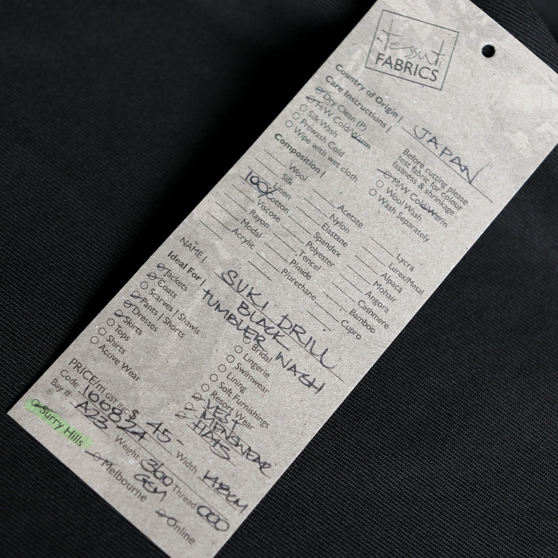 (PREORDER) Suki Drill Black - Tumbler Finish