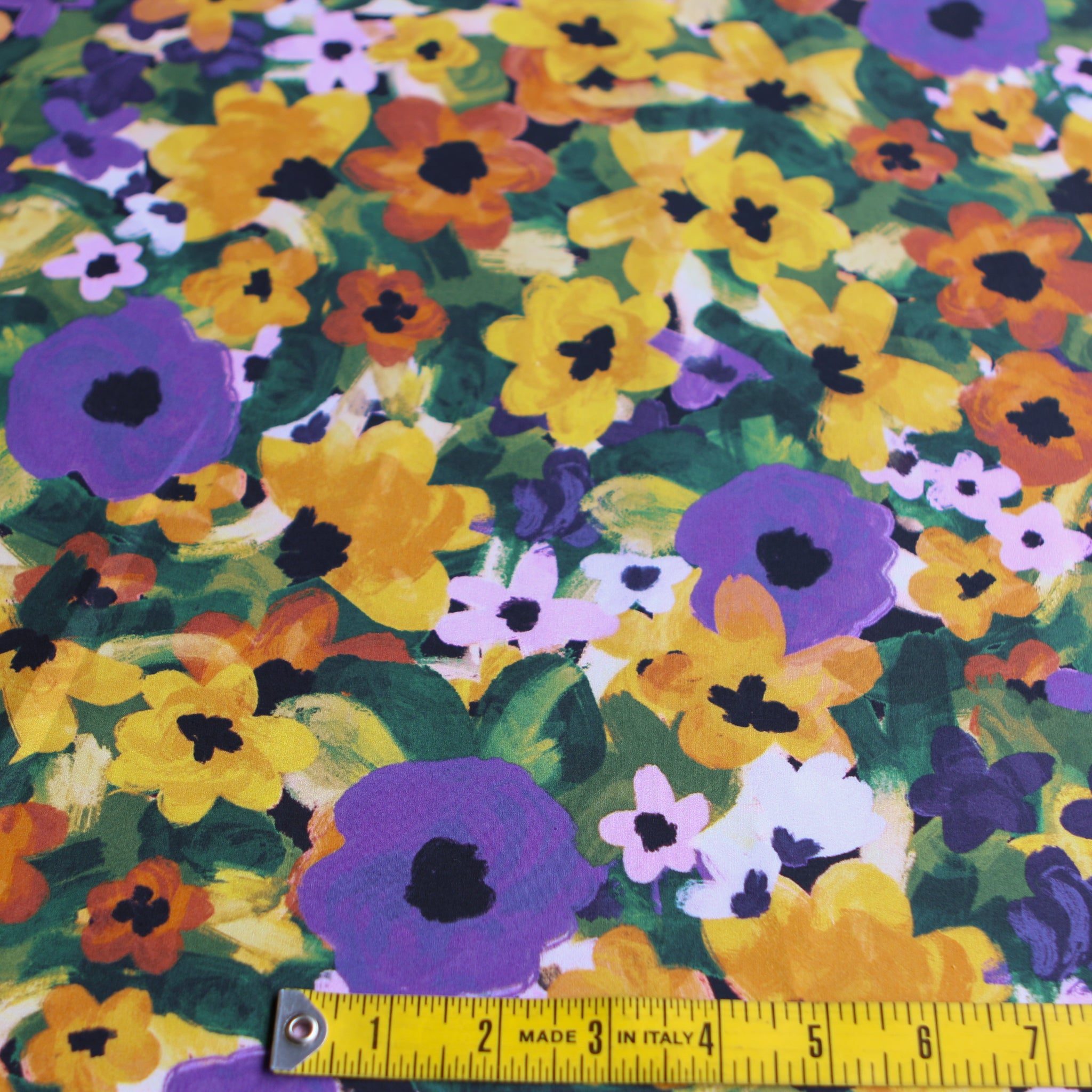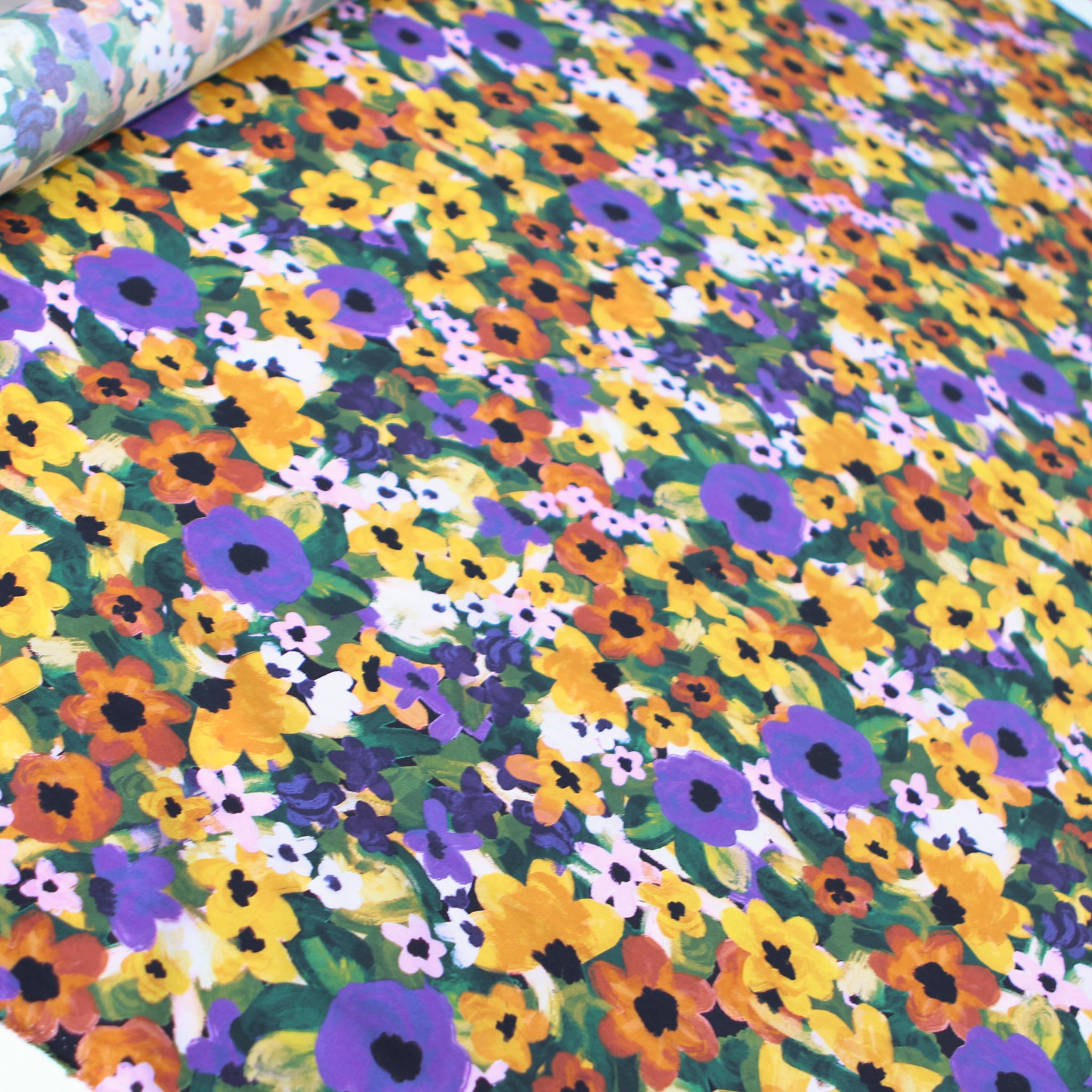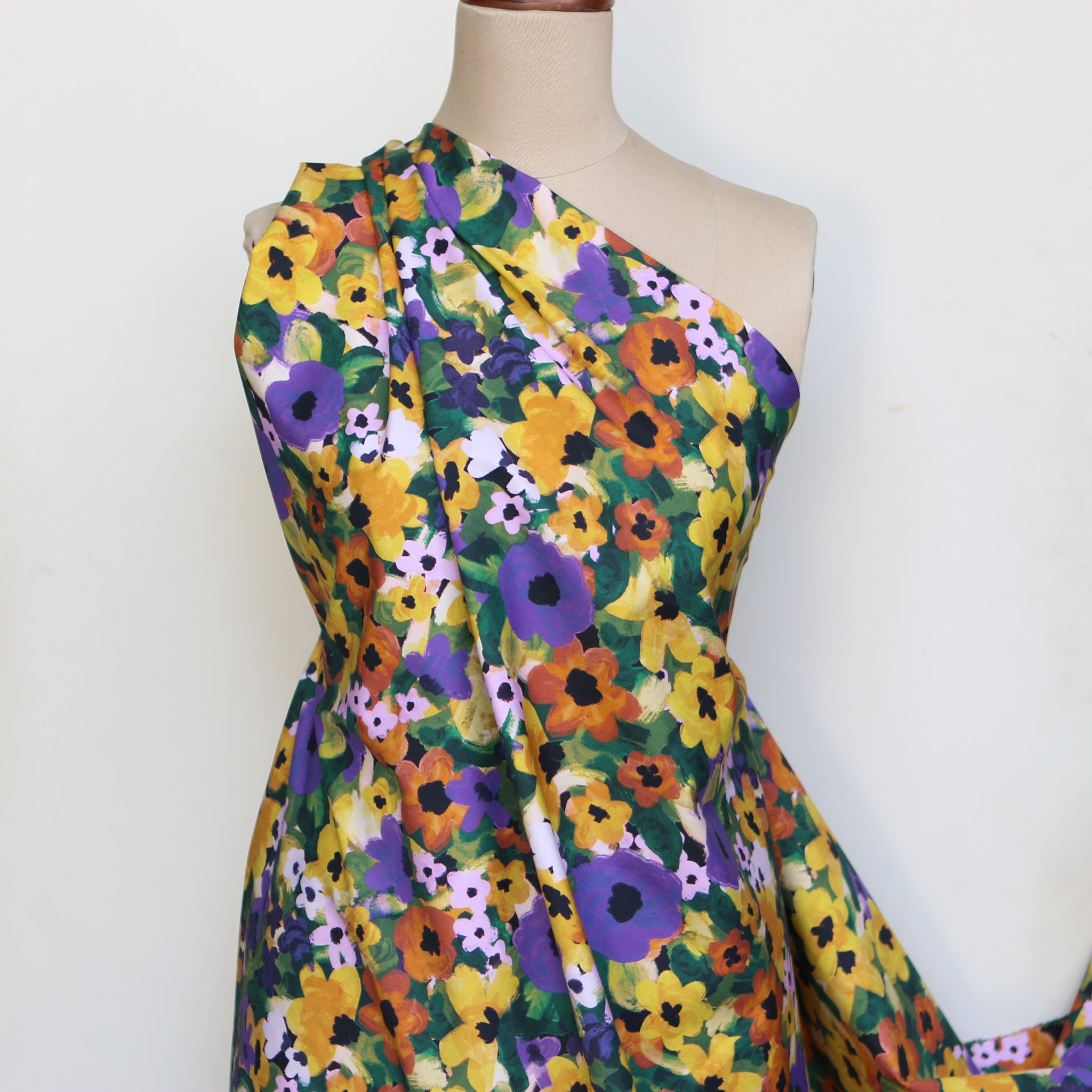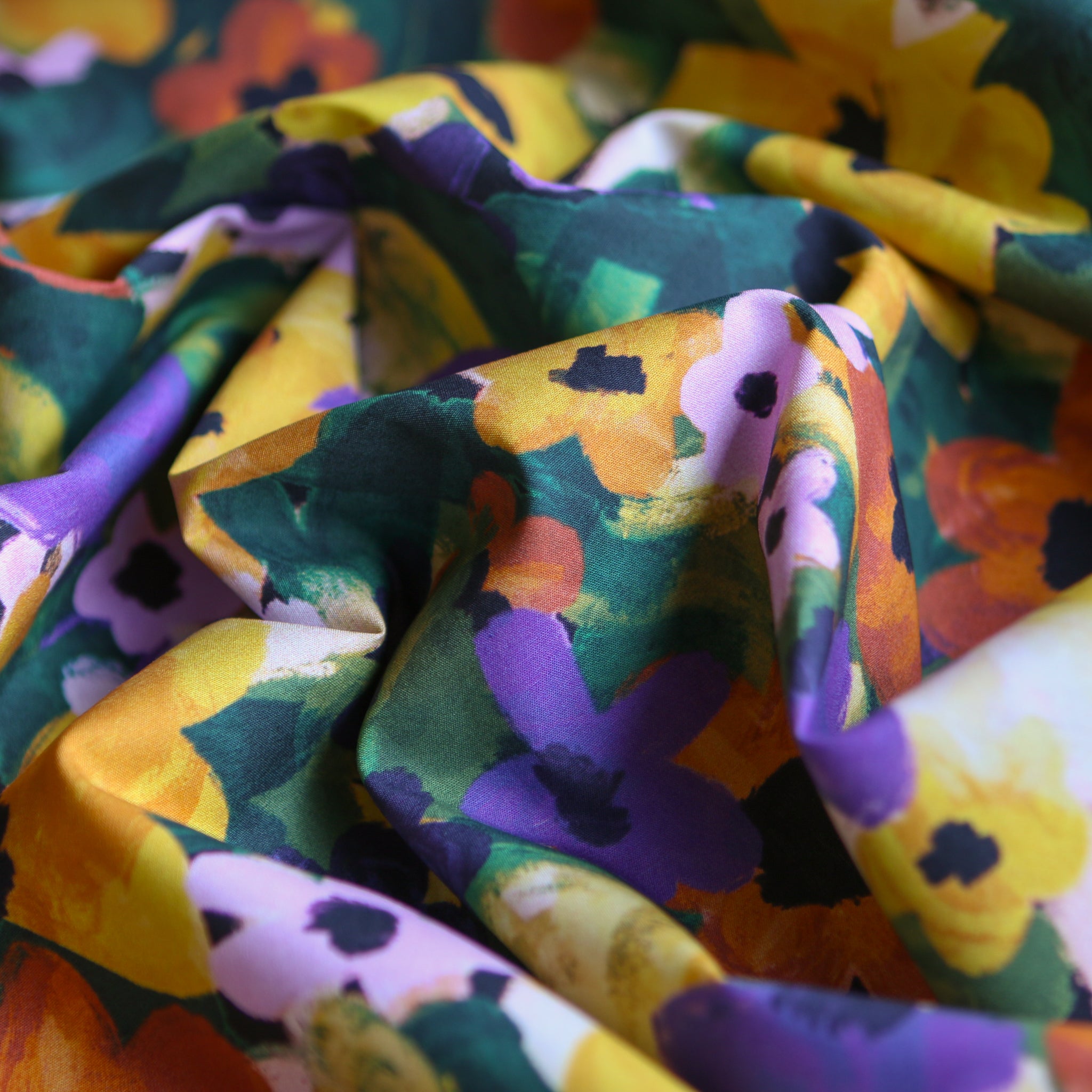 Purple/yellow/green floral printed 100% cotton poplin