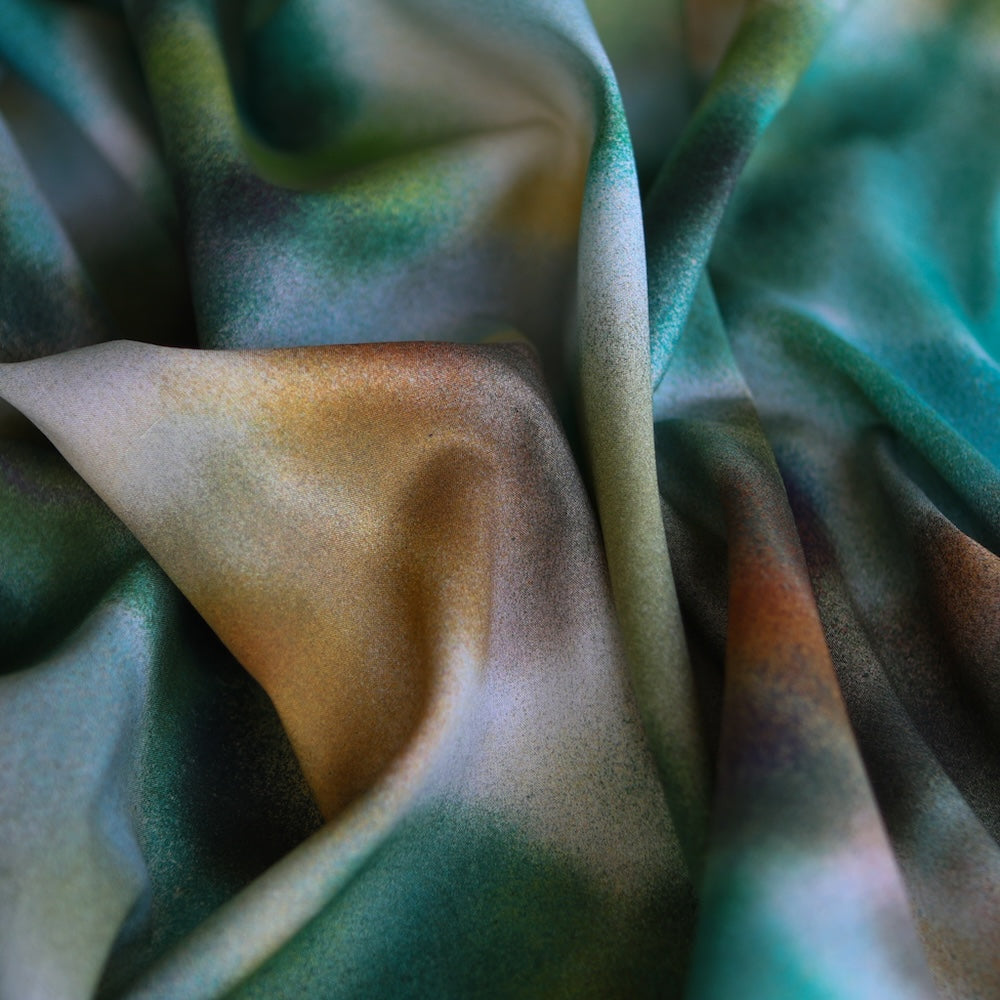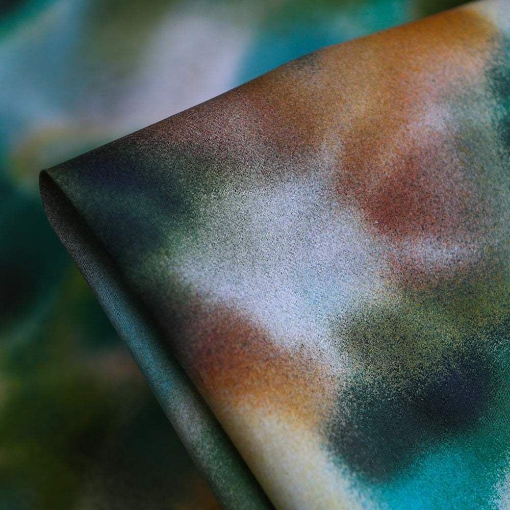 Jessica Alexandra is a bold and captivating print, inspired by the intricate artistry of drag makeup techniques. Seamlessly blending hand-painted elements with digital media, the design merges vibrant colour gradients with layered, abstract floral forms that evoke a spray-painted effect. This visually striking composition is a celebration