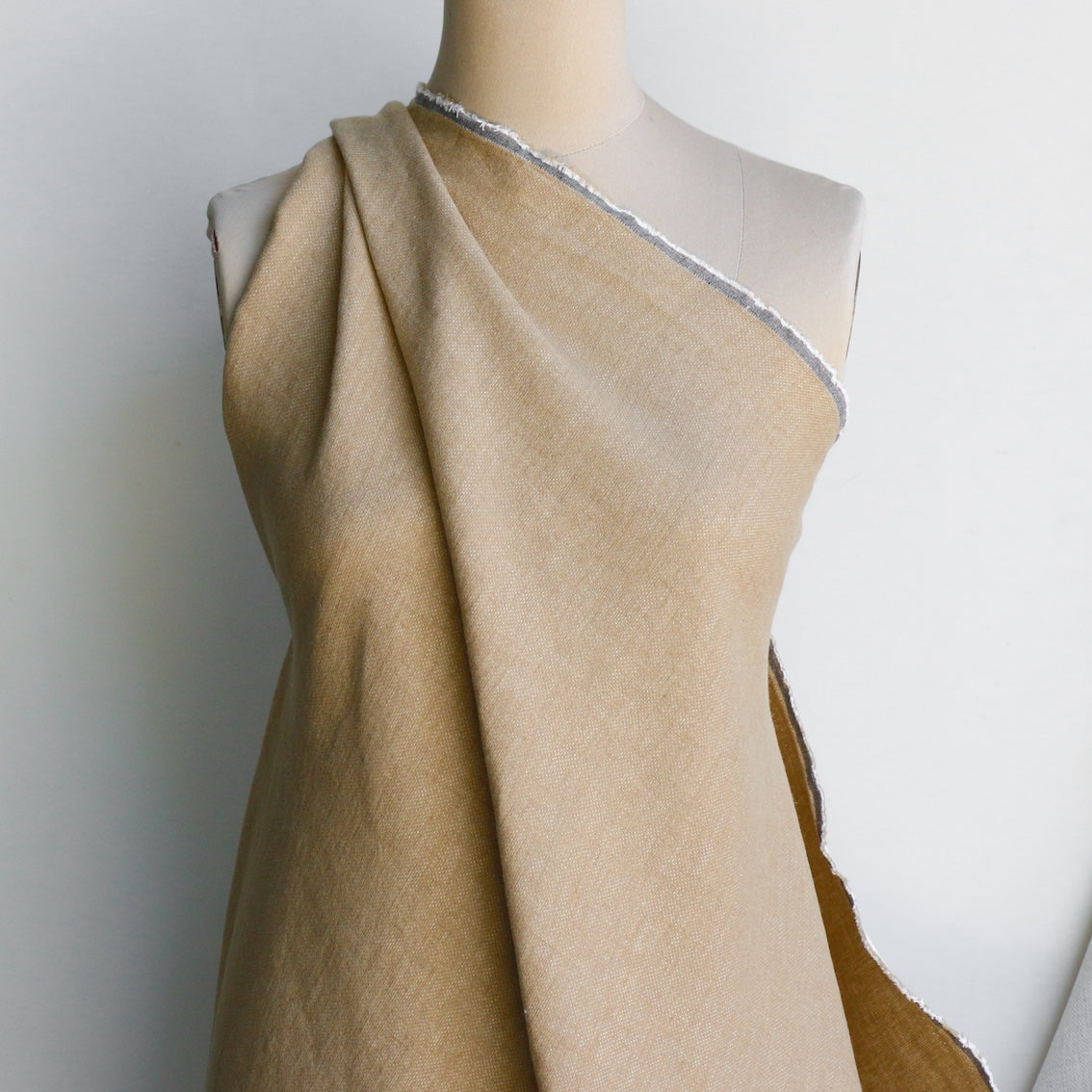Sand yarn-dyed washed textured 55% linen 45% cotton with ecru backing.