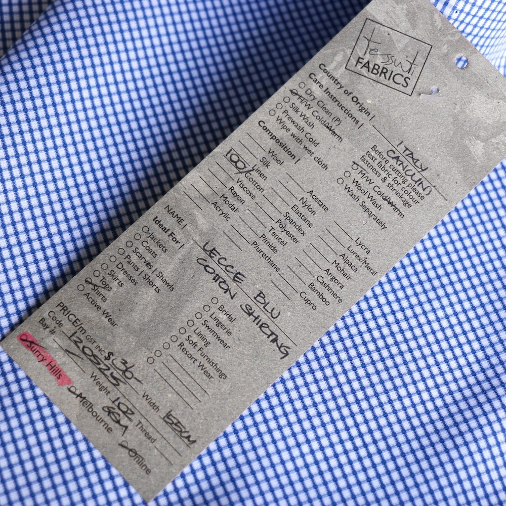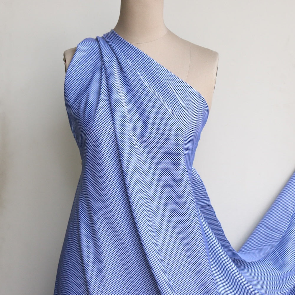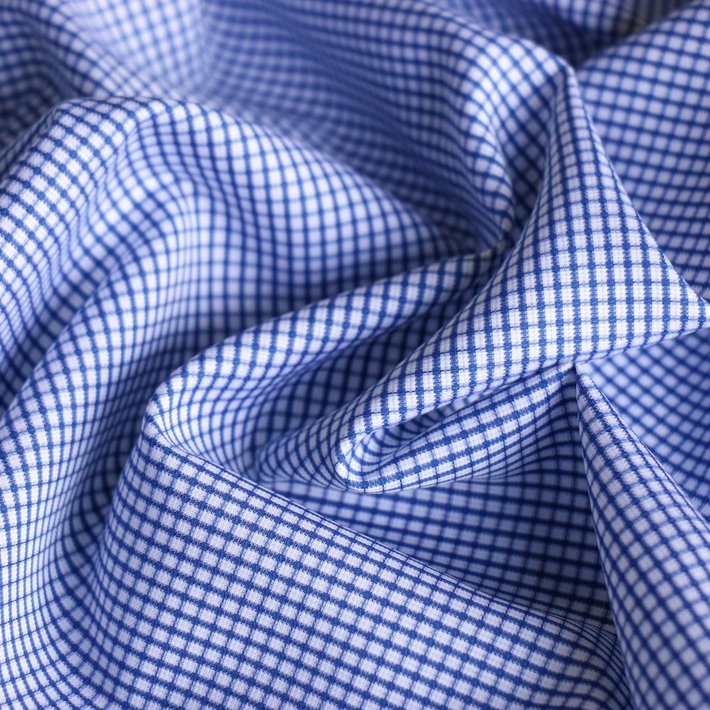 Italian blue/white grid checked 100% cotton shirting
