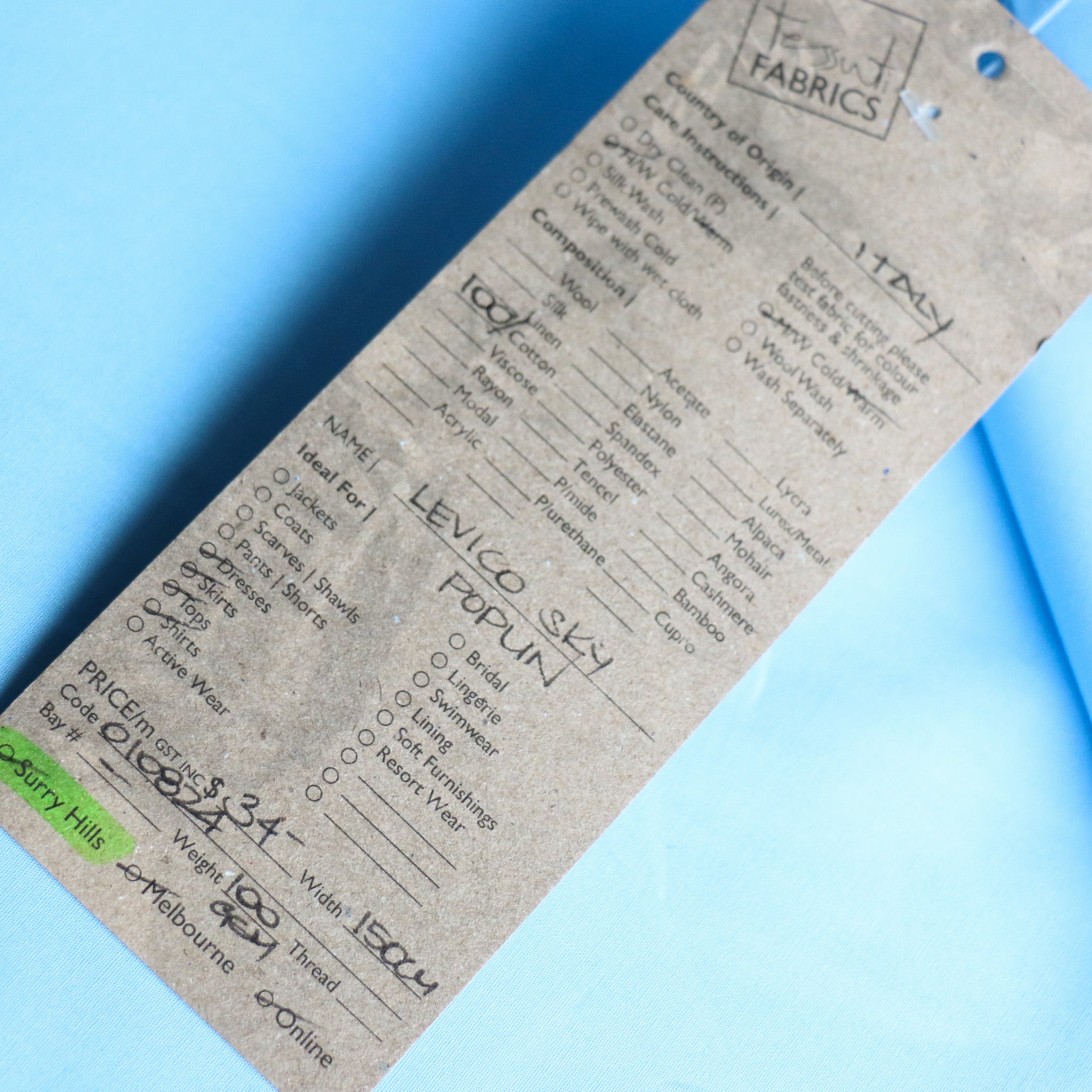 Italian blue 100% cotton poplin