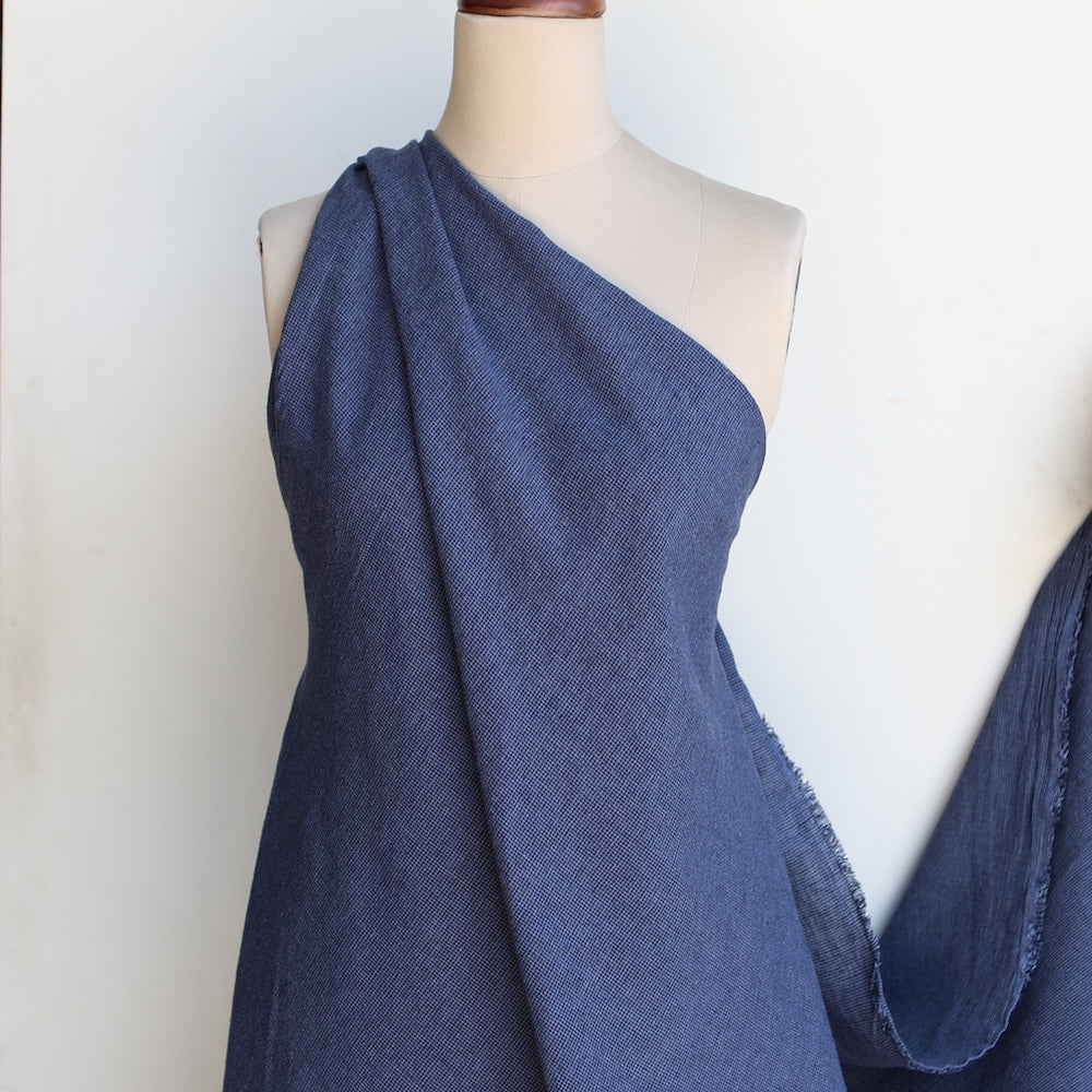 Japanese denim/navy yarn-dyed micro check 55% linen 45% cotton