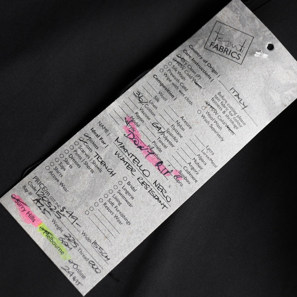 Italian black water resistant 64% polyester 36% cotton