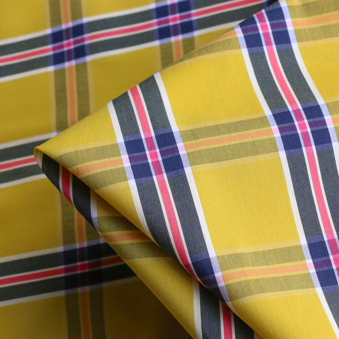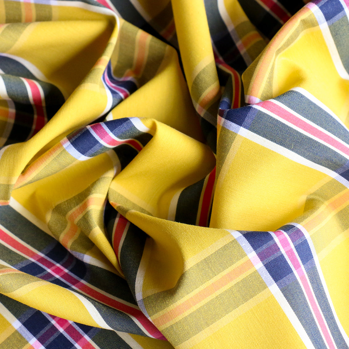 Mattea Check Yellow/Navy Stretch Cotton Shirting