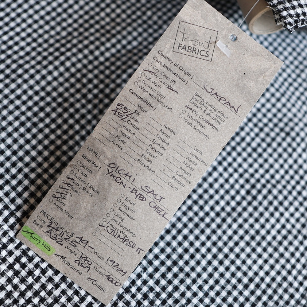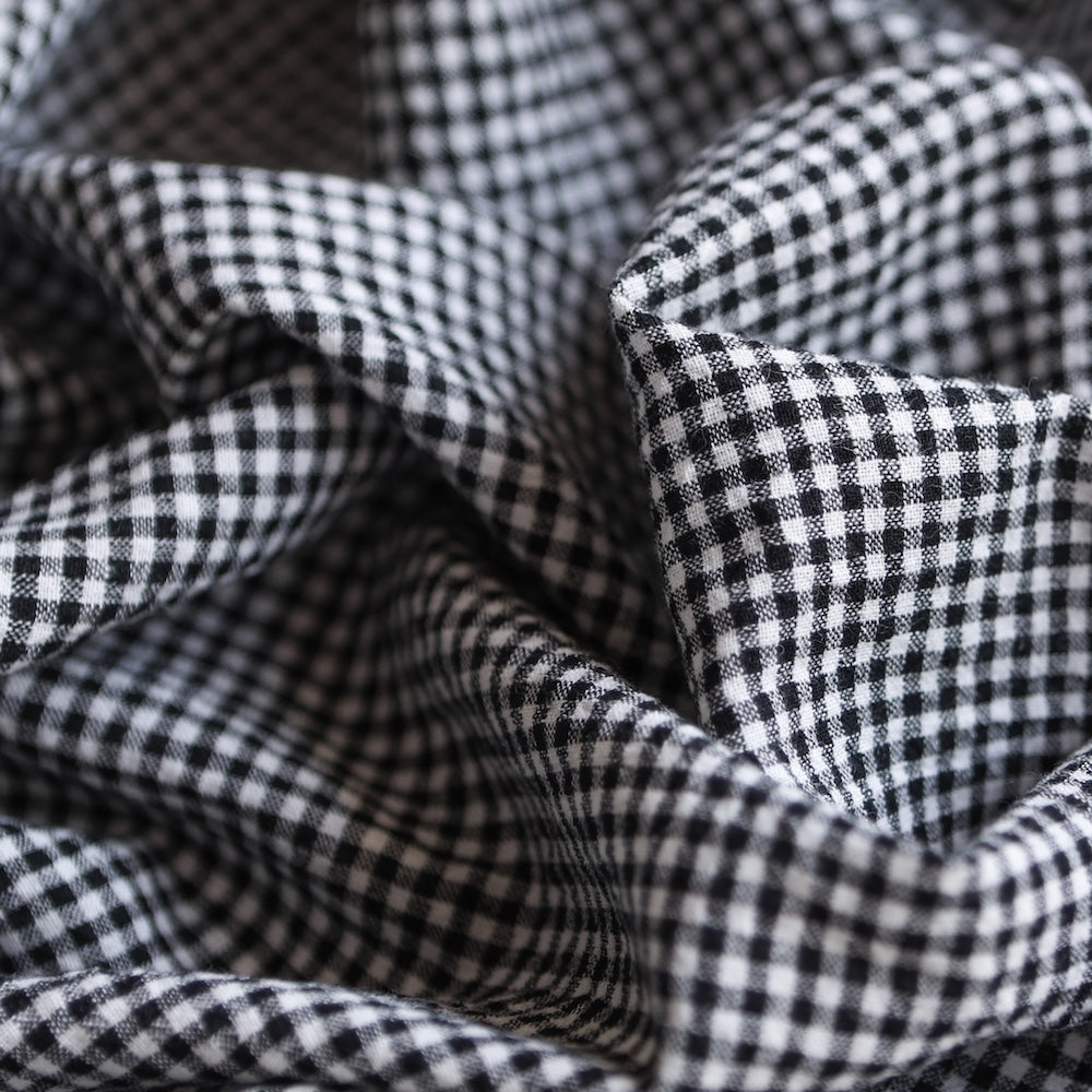 Japanese white/black yarn-dyed mini gingham check 55% linen 45% cotton