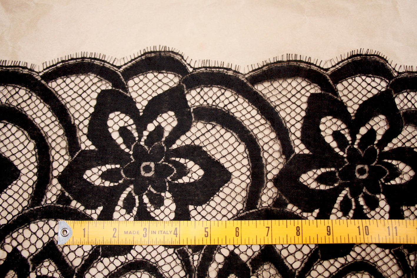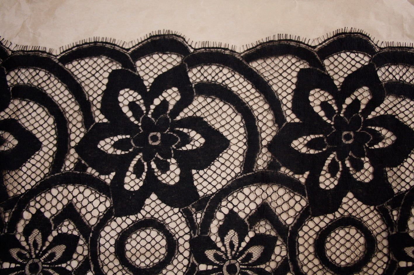 French off-white 60% cotton 20% rayon 20% nylon lace. Width: 150cm