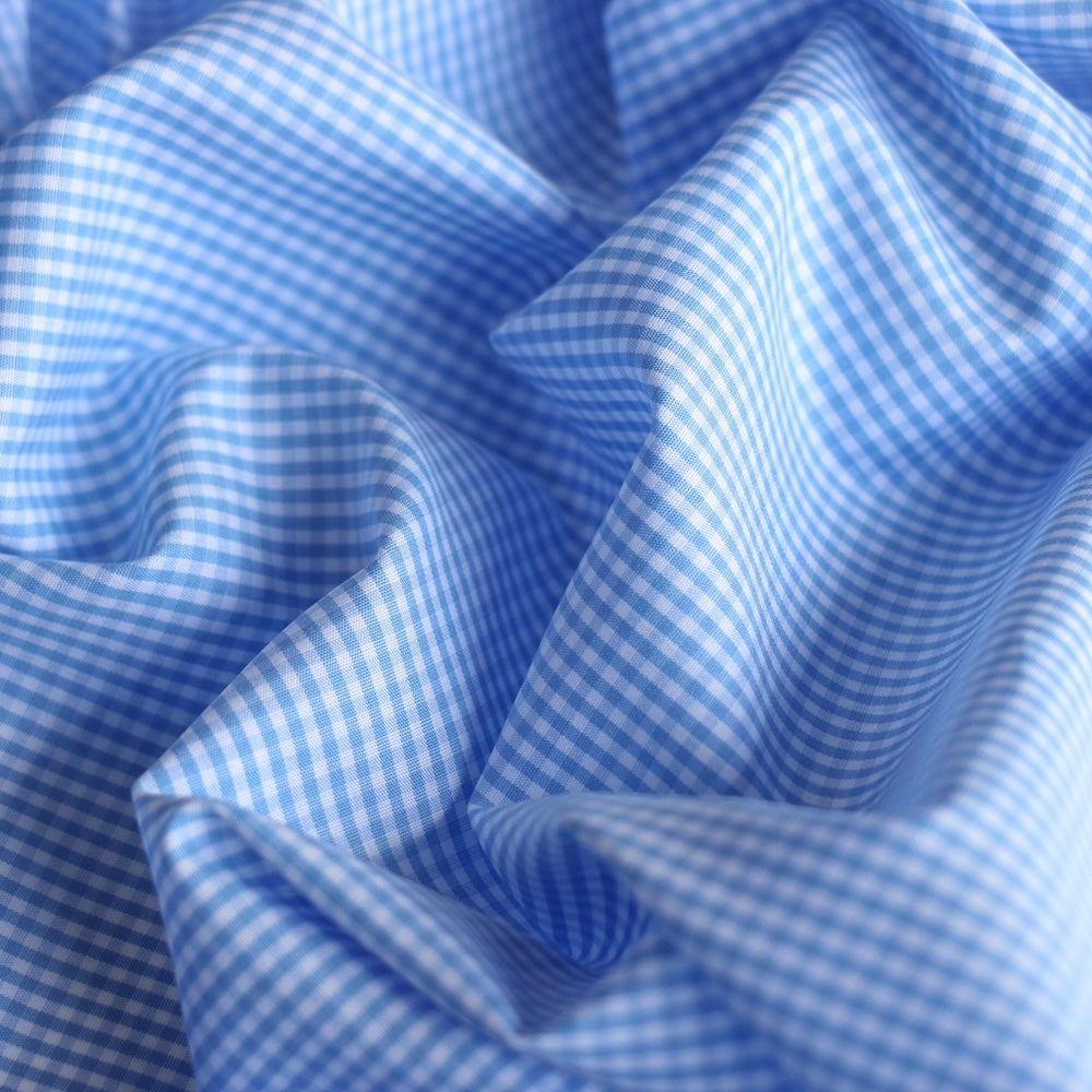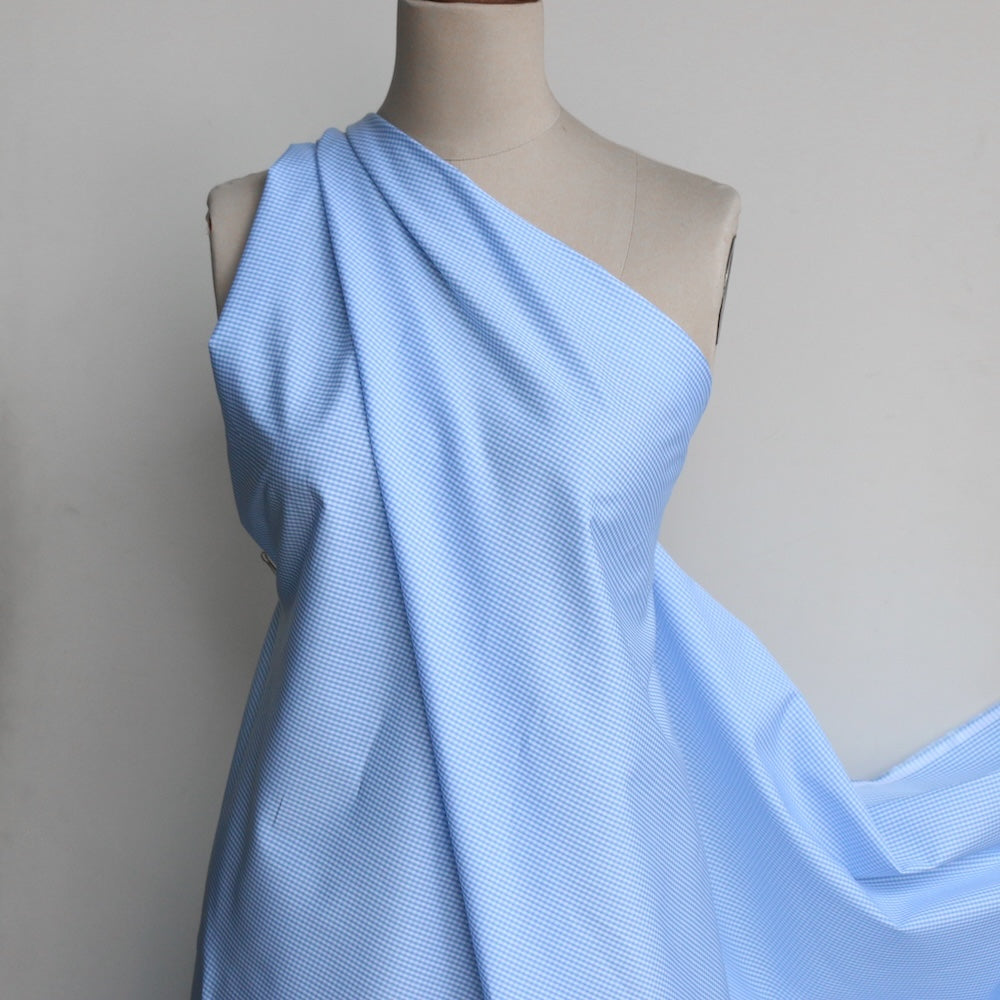Italian sky/white gingham checked 100% cotton shirting