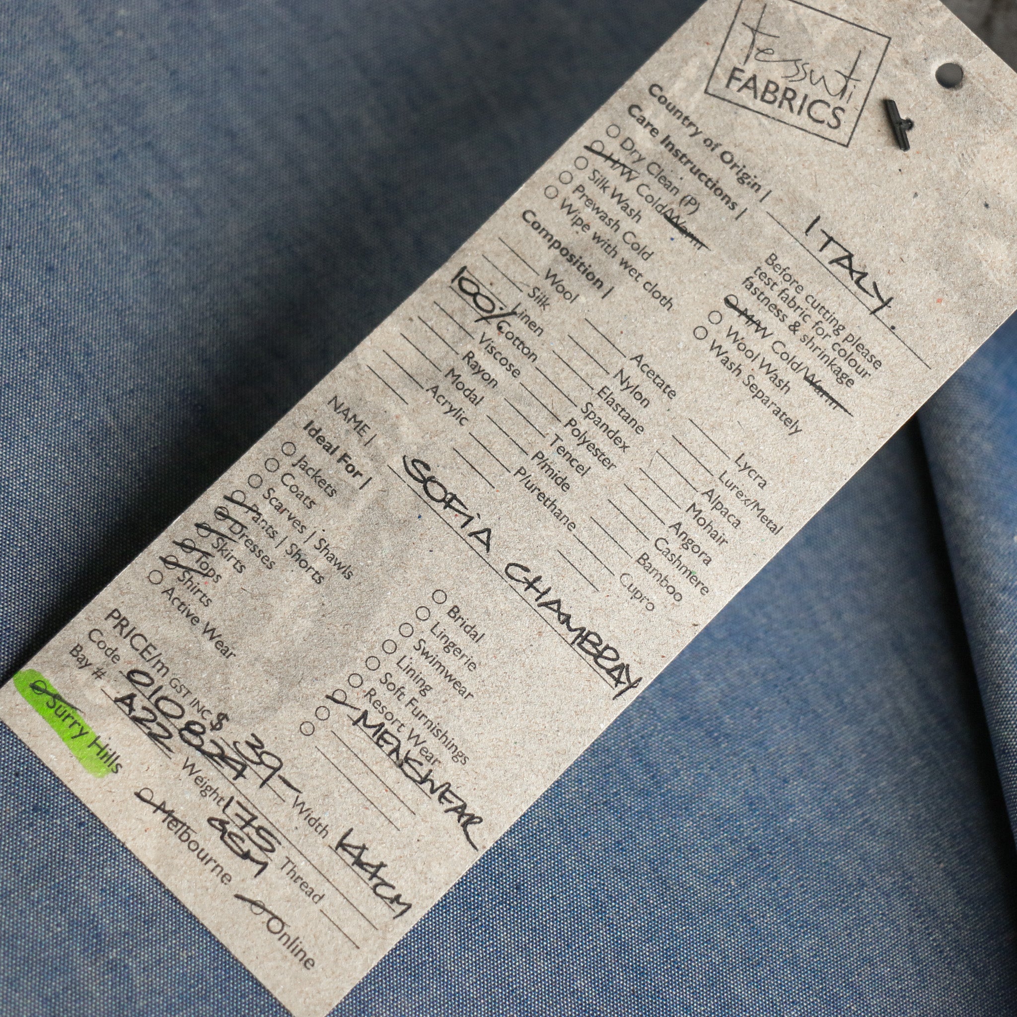Italian chambray blue 100% cotton