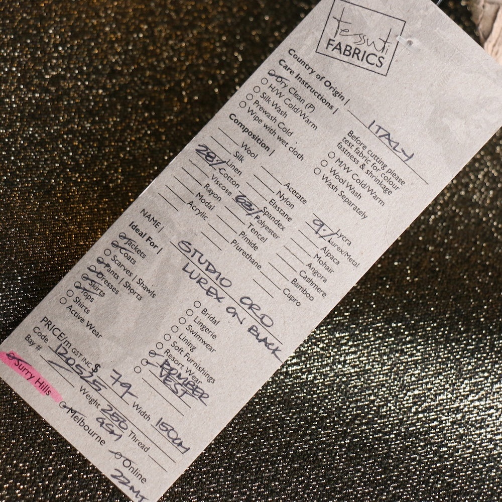 Italian designer antique gold/black 63% polyester 28% cotton 9% lurex metallic