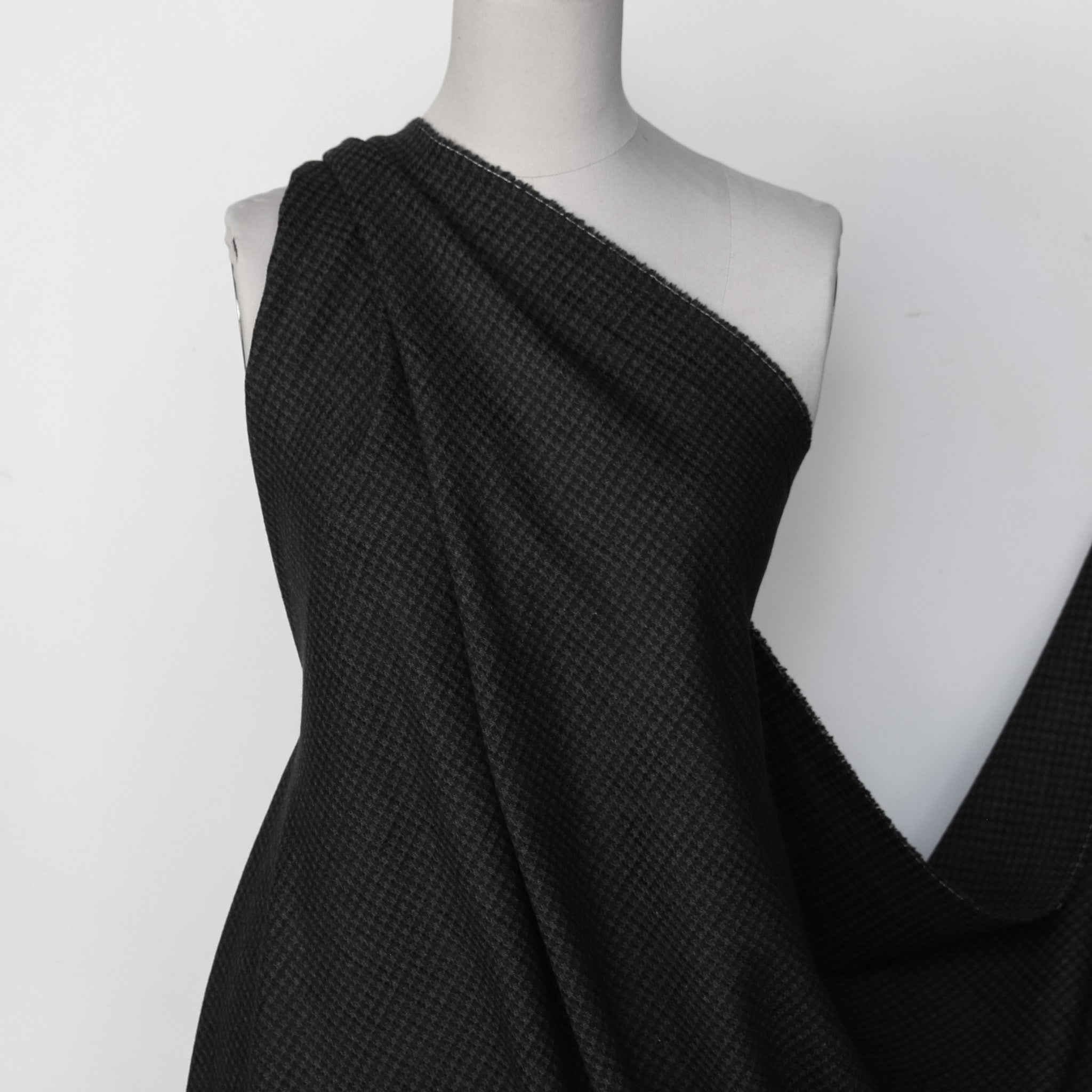 Italian charcoal/black flocked houndstooth 60% wool 40% cotton