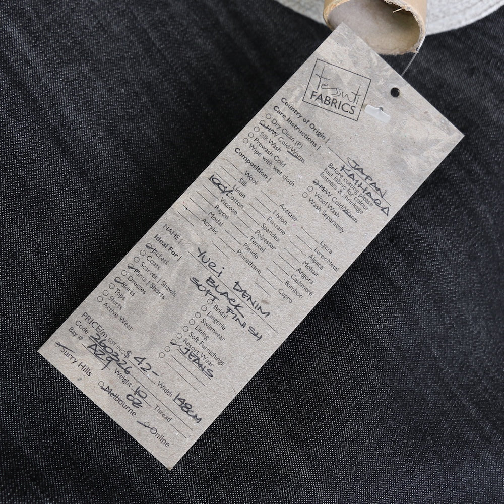 Japanese Kaihara black 100% cotton denim with soft finish