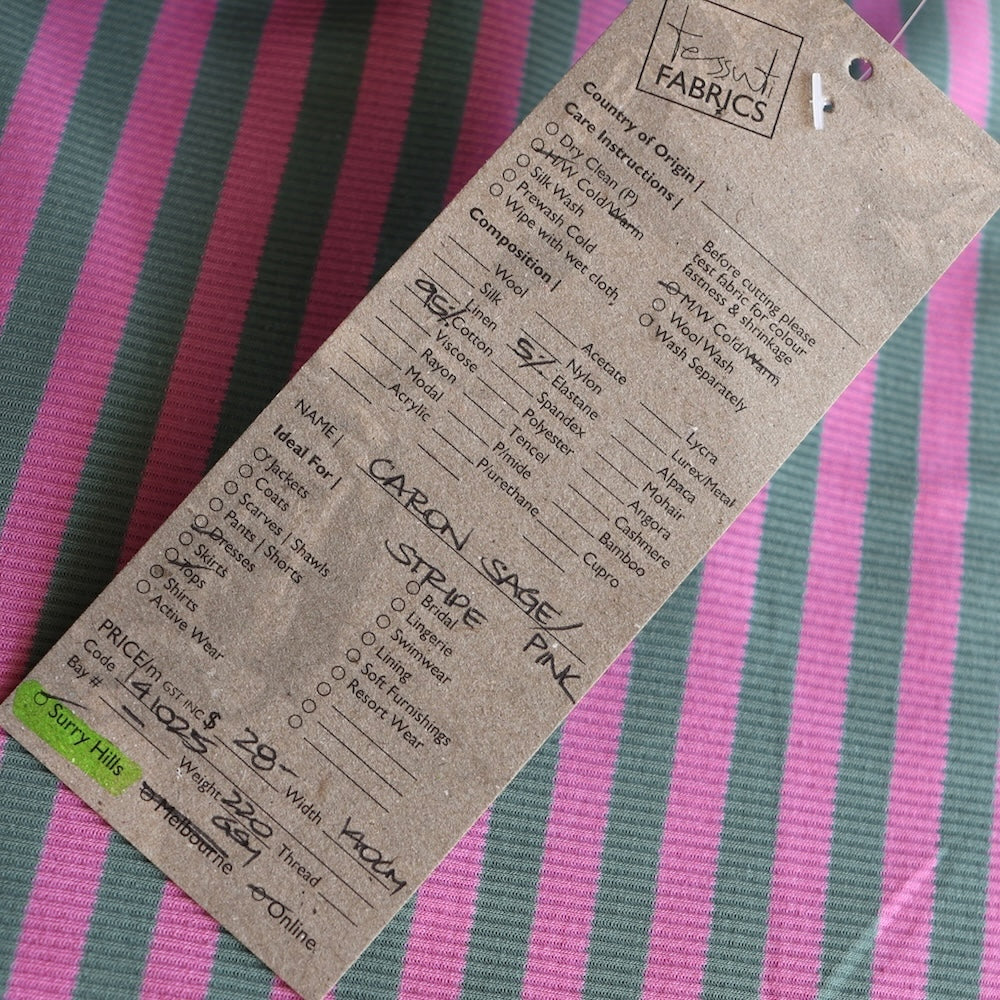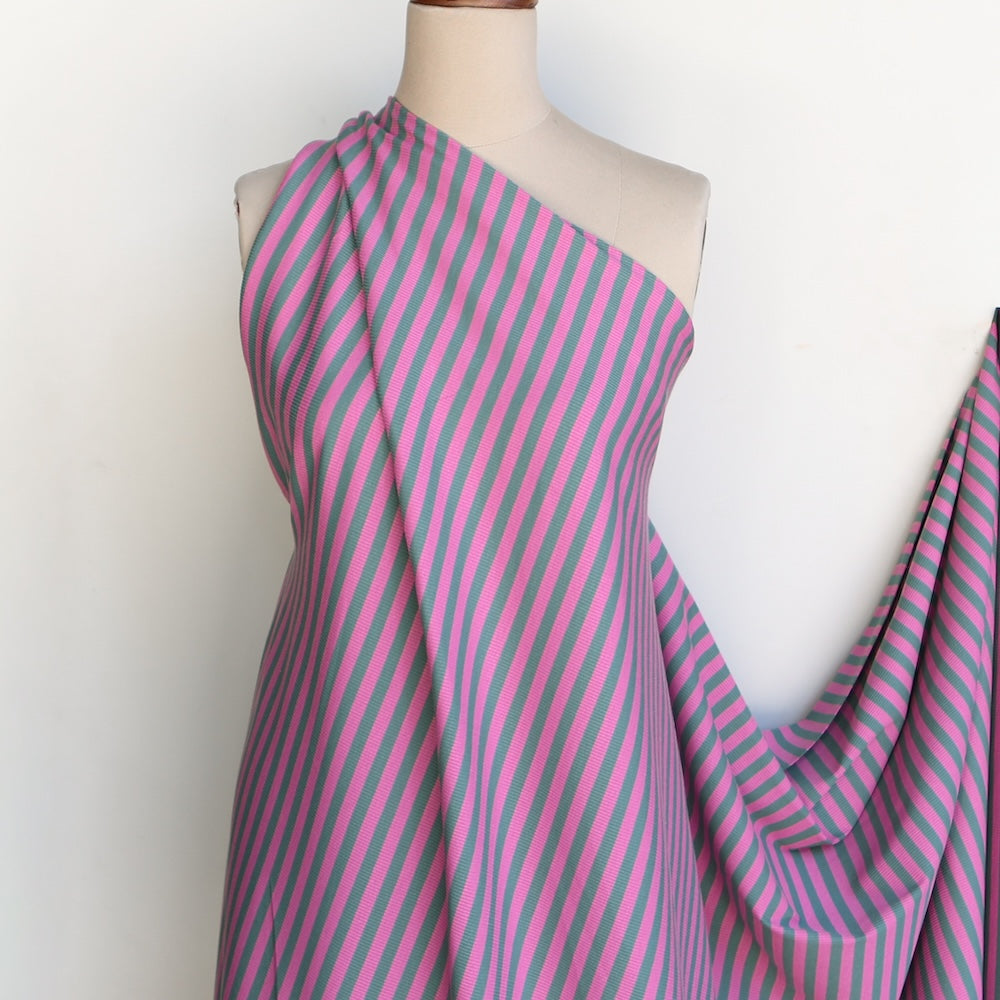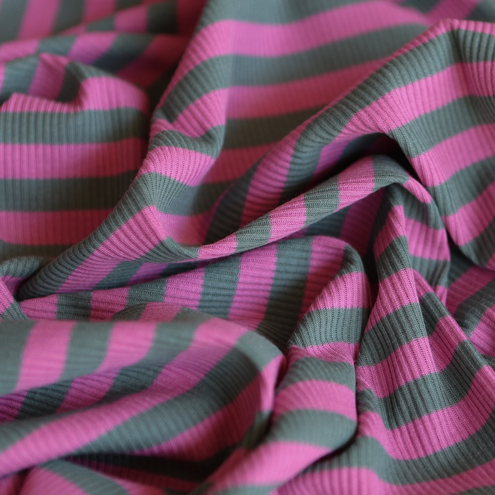 Sage/pink striped 95% cotton 5% elastane stretch rib knit