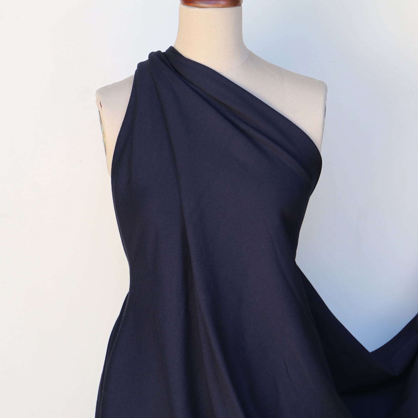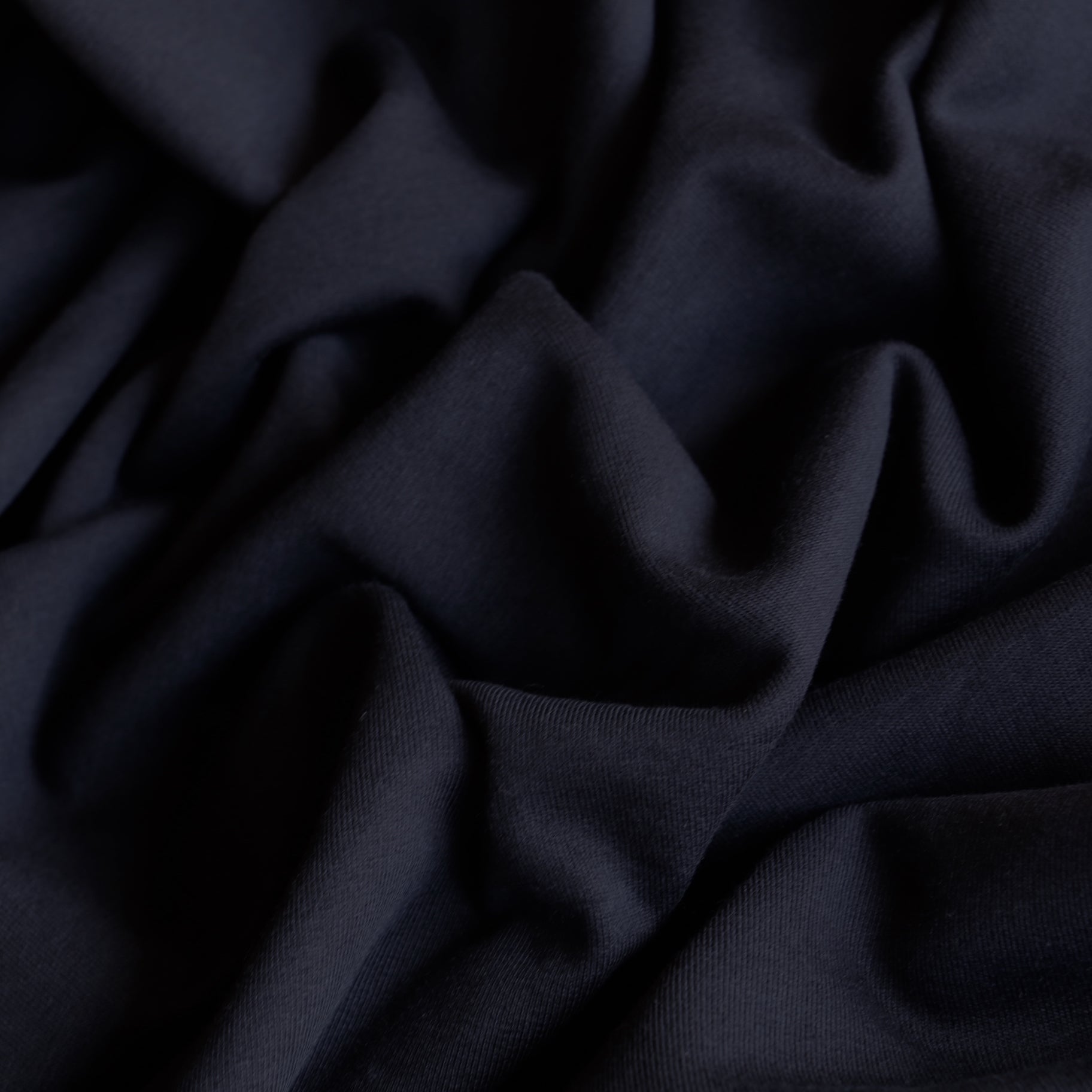 Navy 95% cotton 5% elastane soft brush fleece knit.