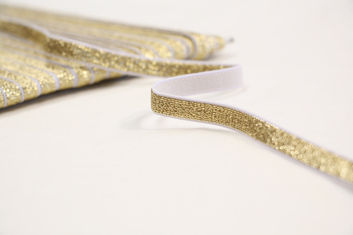 Firm 10mm or 3/8" stretch metallic fancy elastic trim - Gold Metallic.