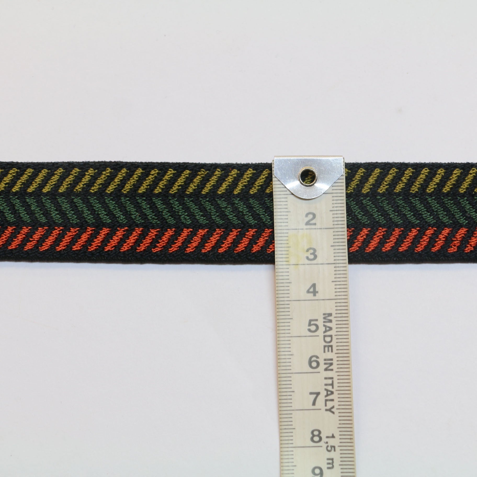 30mm or 1 1/4" stretch striped fancy elastic trim - Black/Zig Zag Jacquard