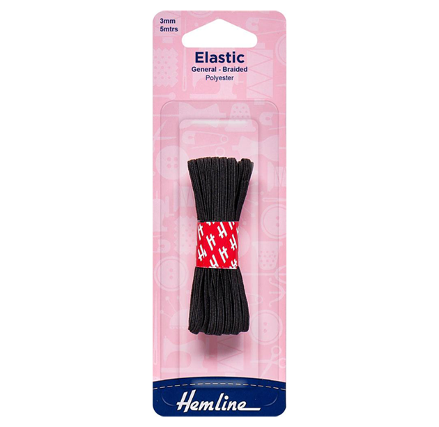 3mm x 5 metres - Braided polyester elastic is a popular general purpose elastic as it is strong and durable. Used mainly in casing application, it can also be used for swimwear.