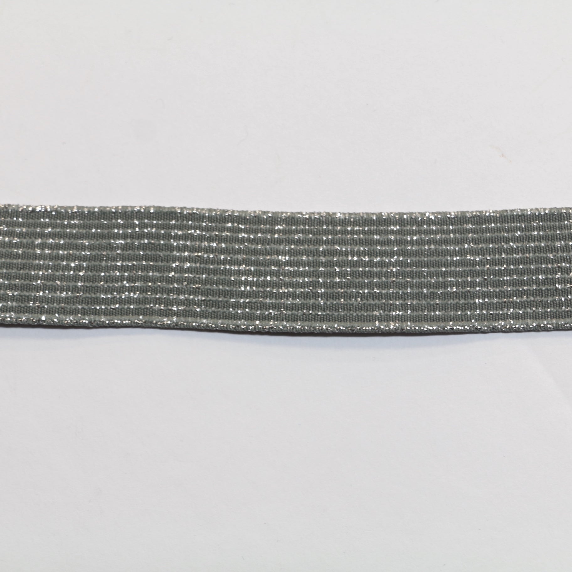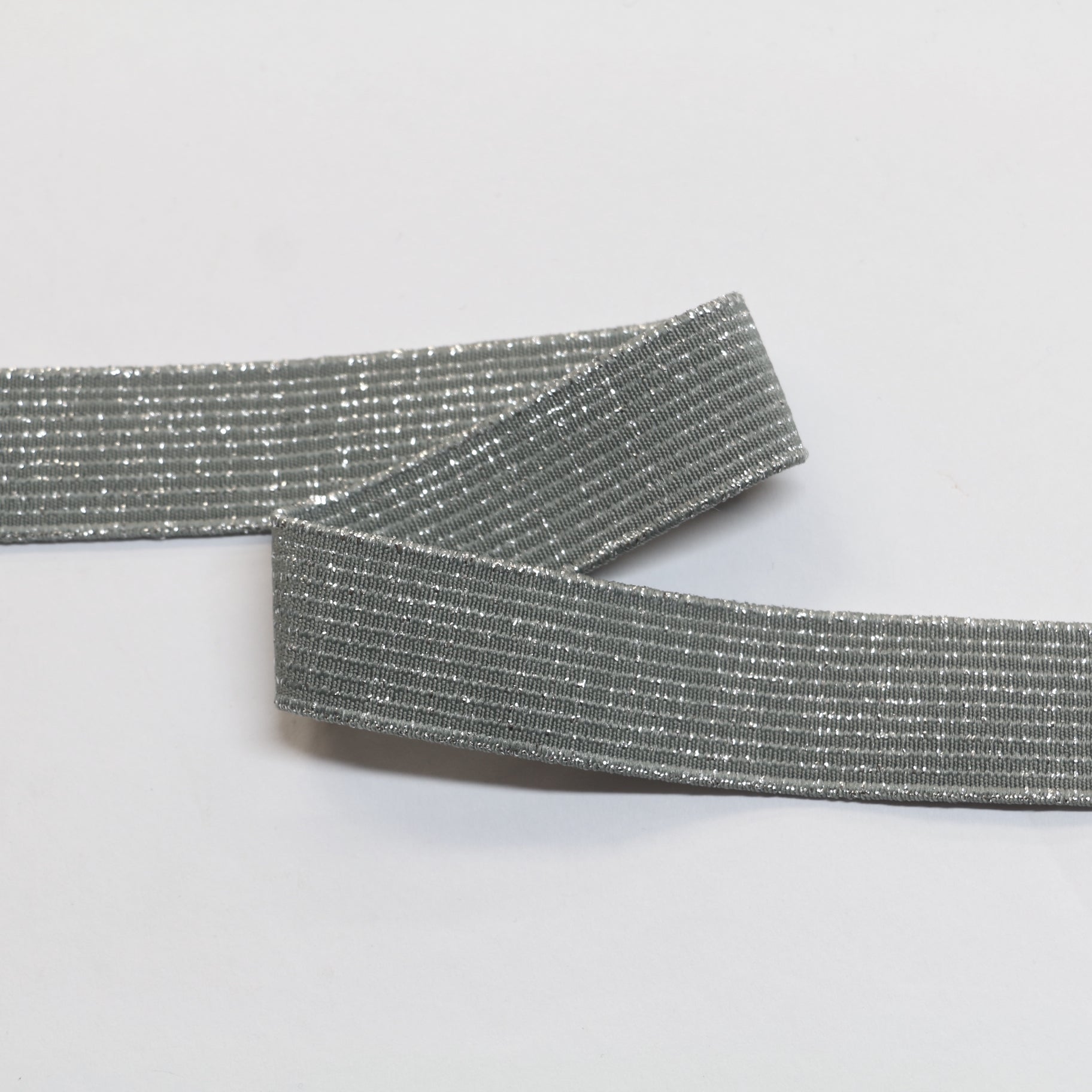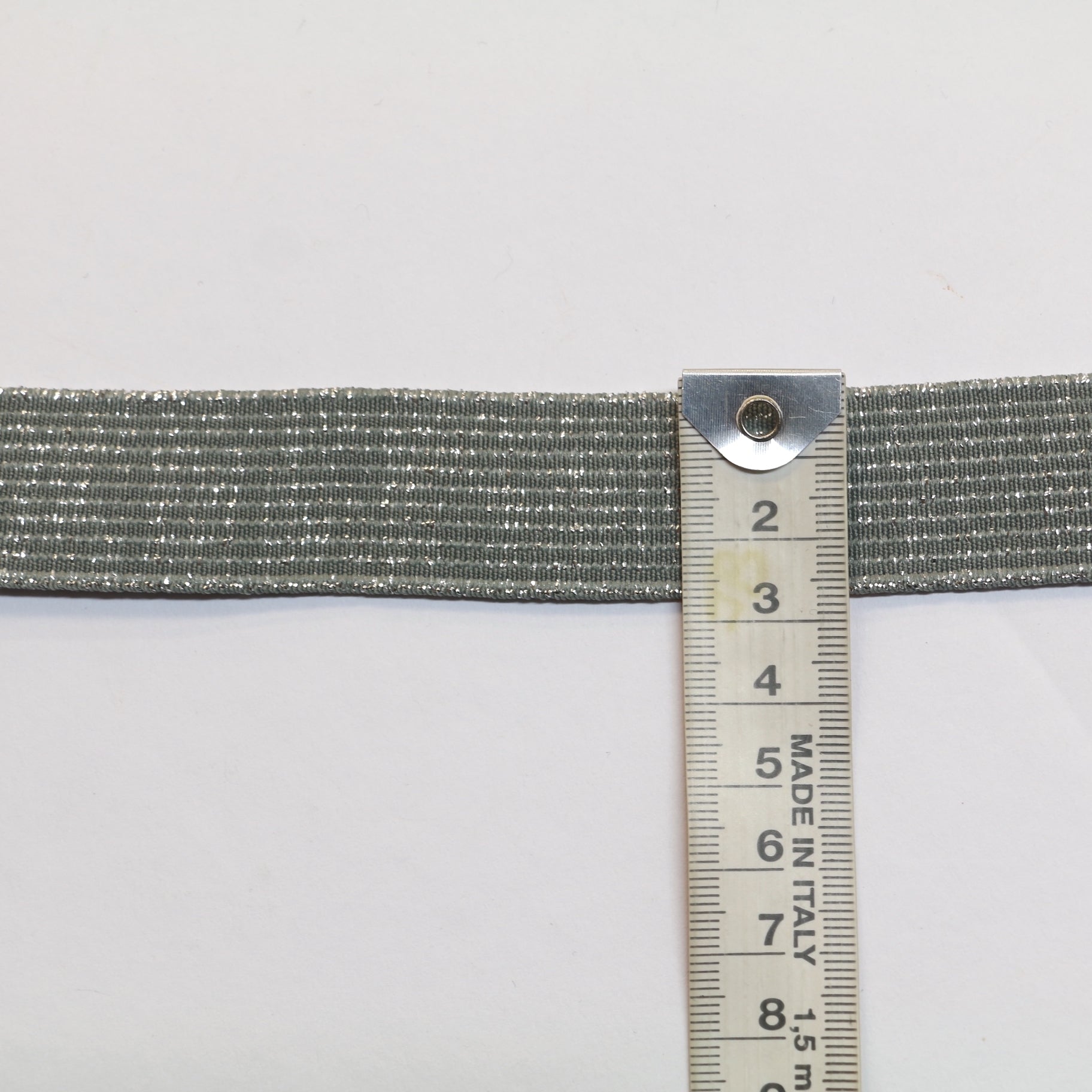 Italian 25mm/1" stretch striped metallic fancy elastic trim - Grey/Silver Metallic