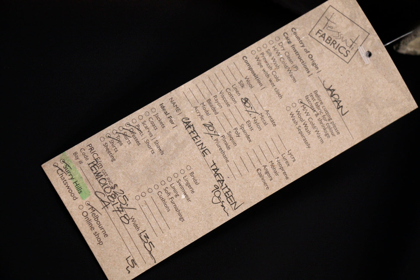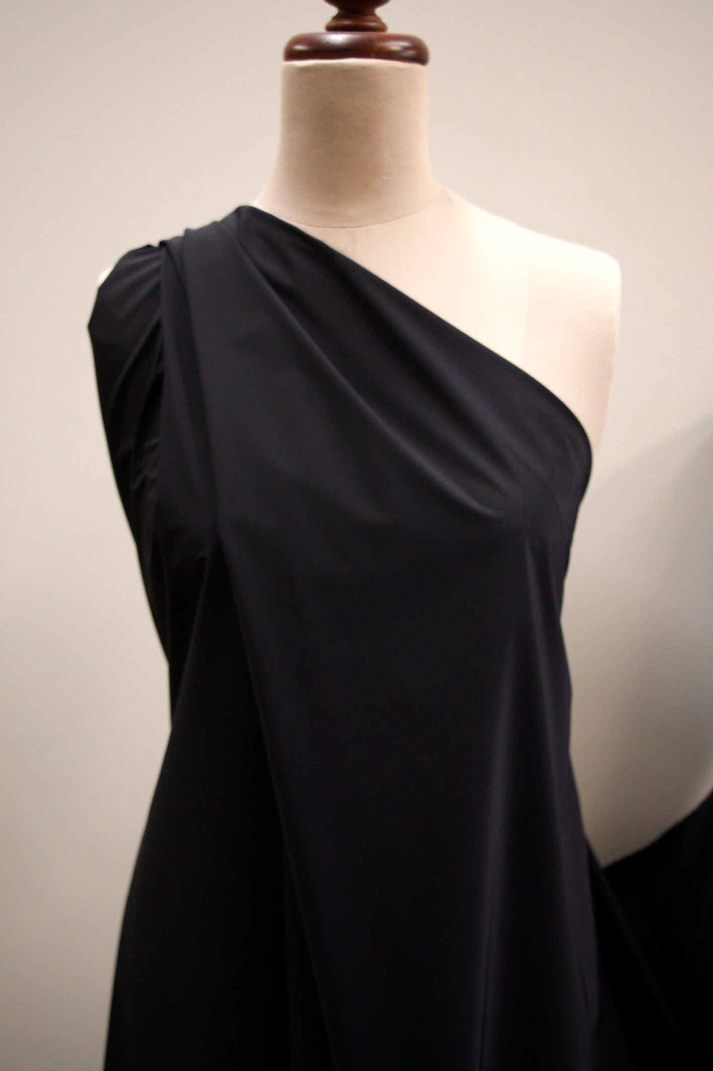 Designer black 80% nylon 20% polyurethane stretch tafetta. Width:135cm Weight:90gsm