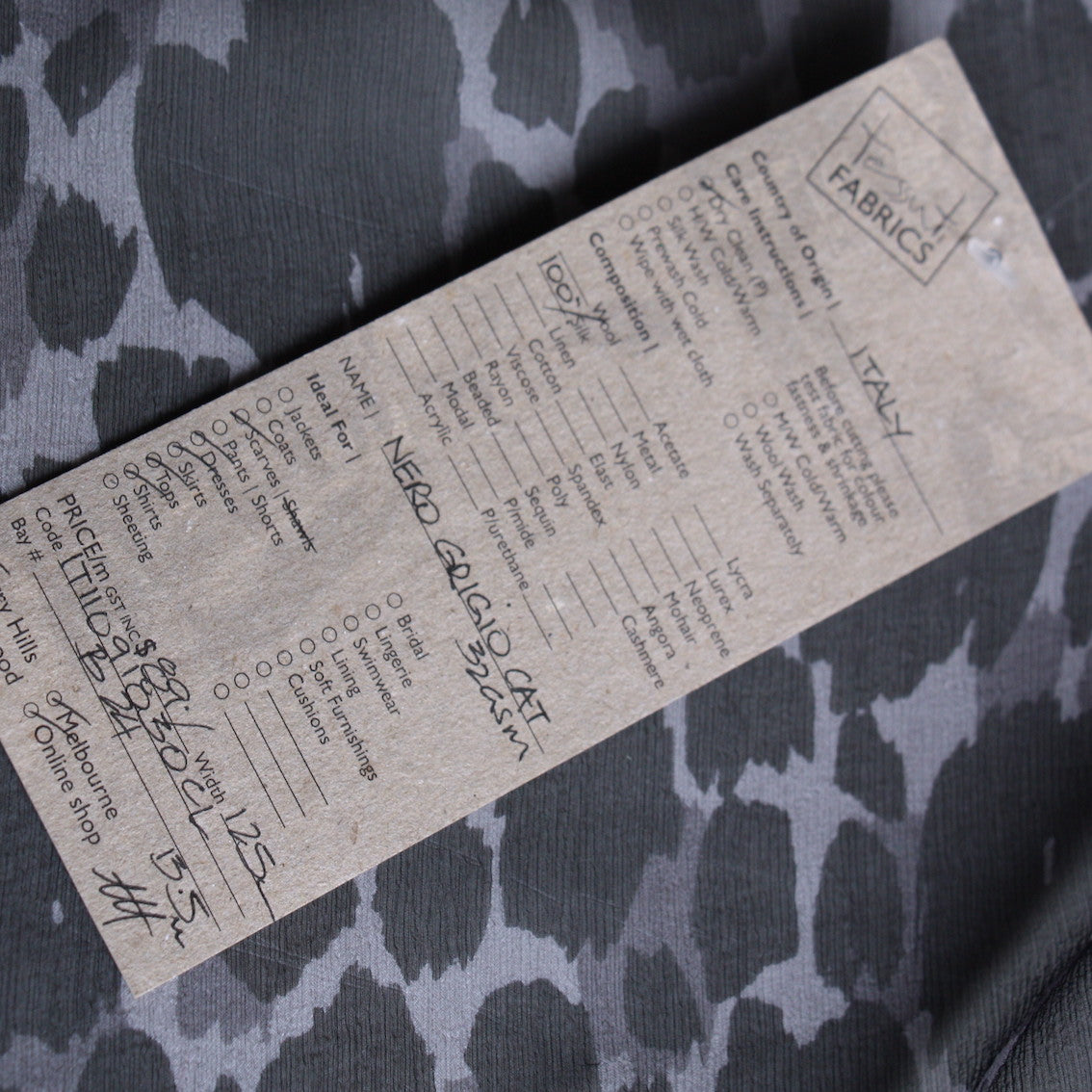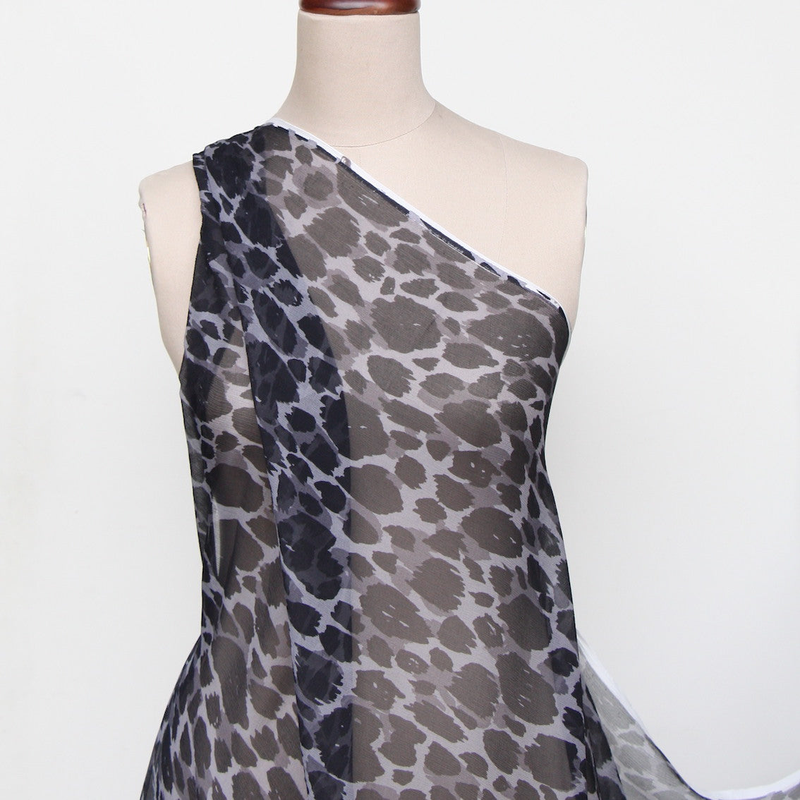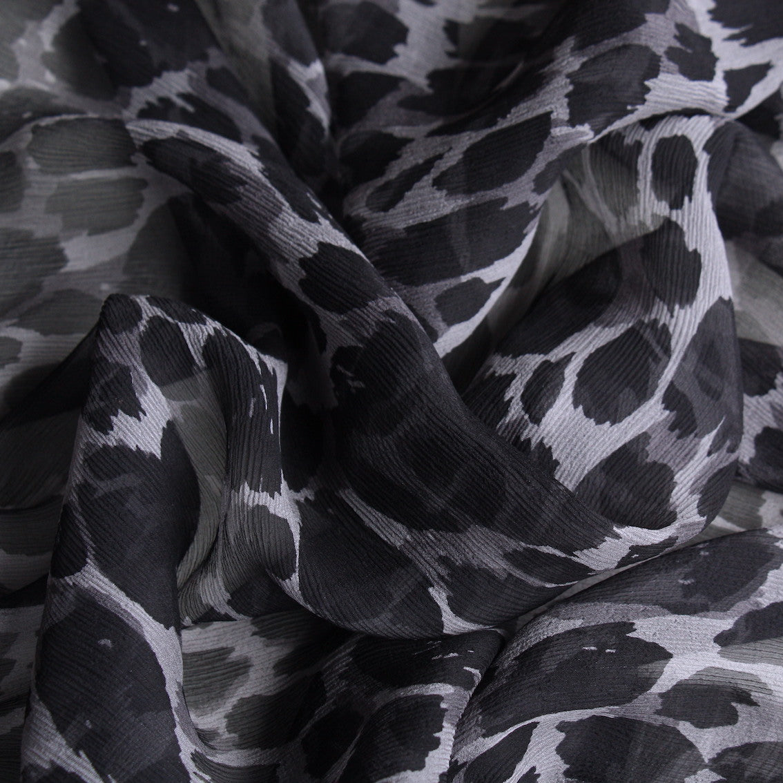 Italian designer grey/black animal spot 100% silk crinkle chiffon