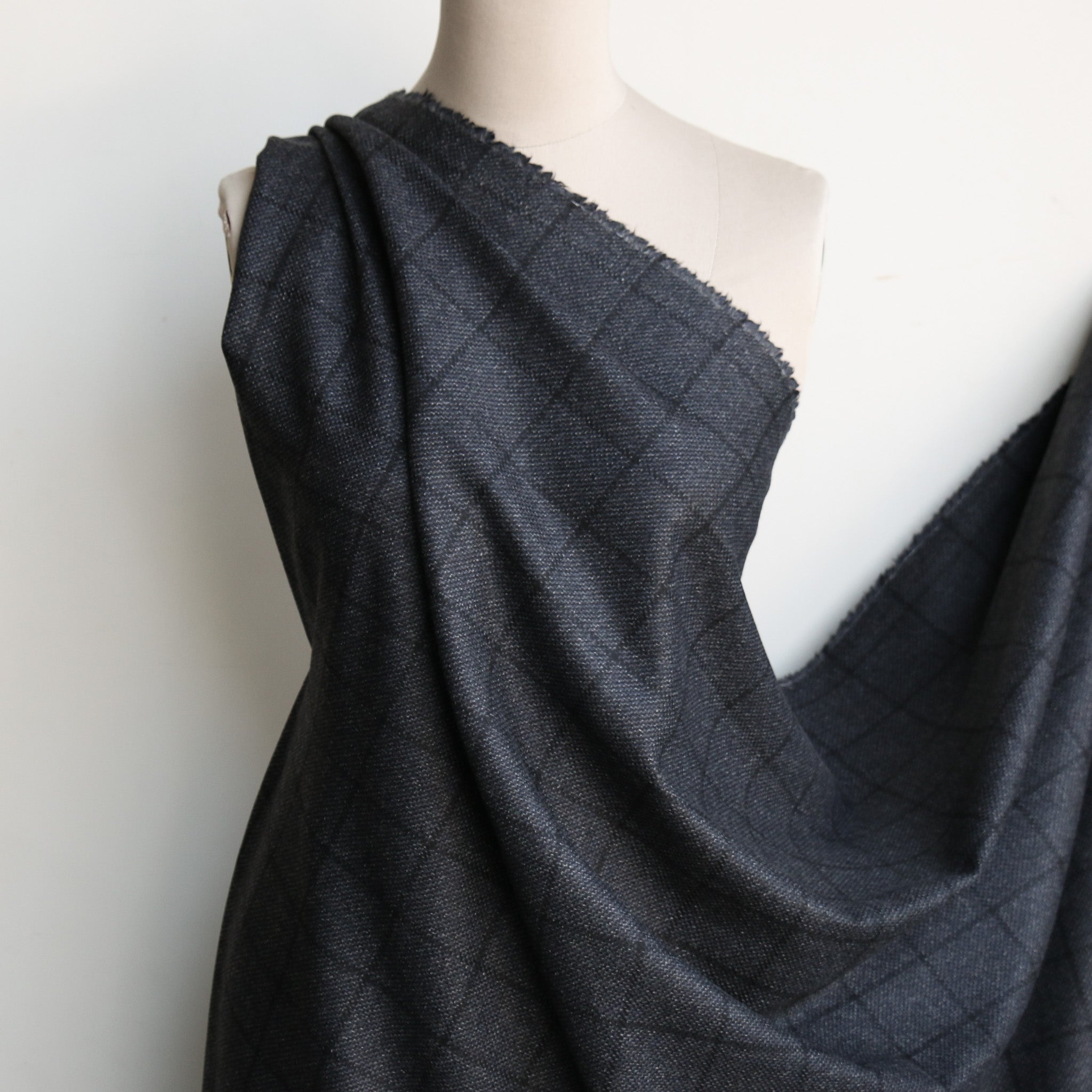 Italian charcoal/french navy checked 100% wool