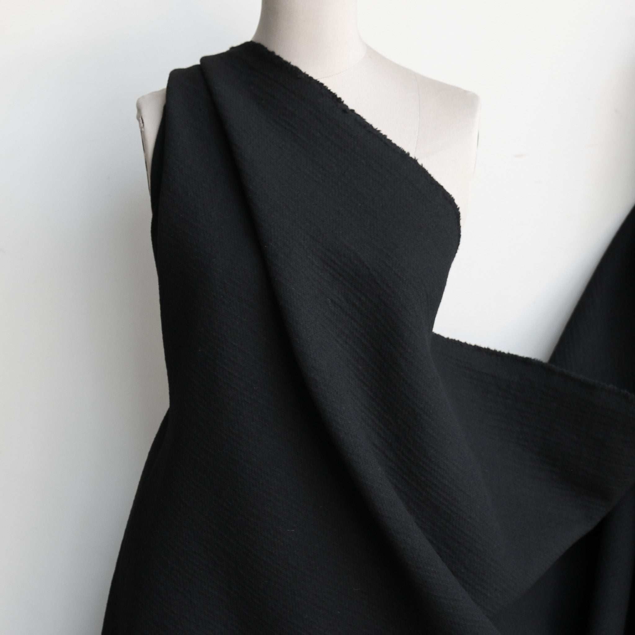 Italian black textured 100% wool double sided coating.