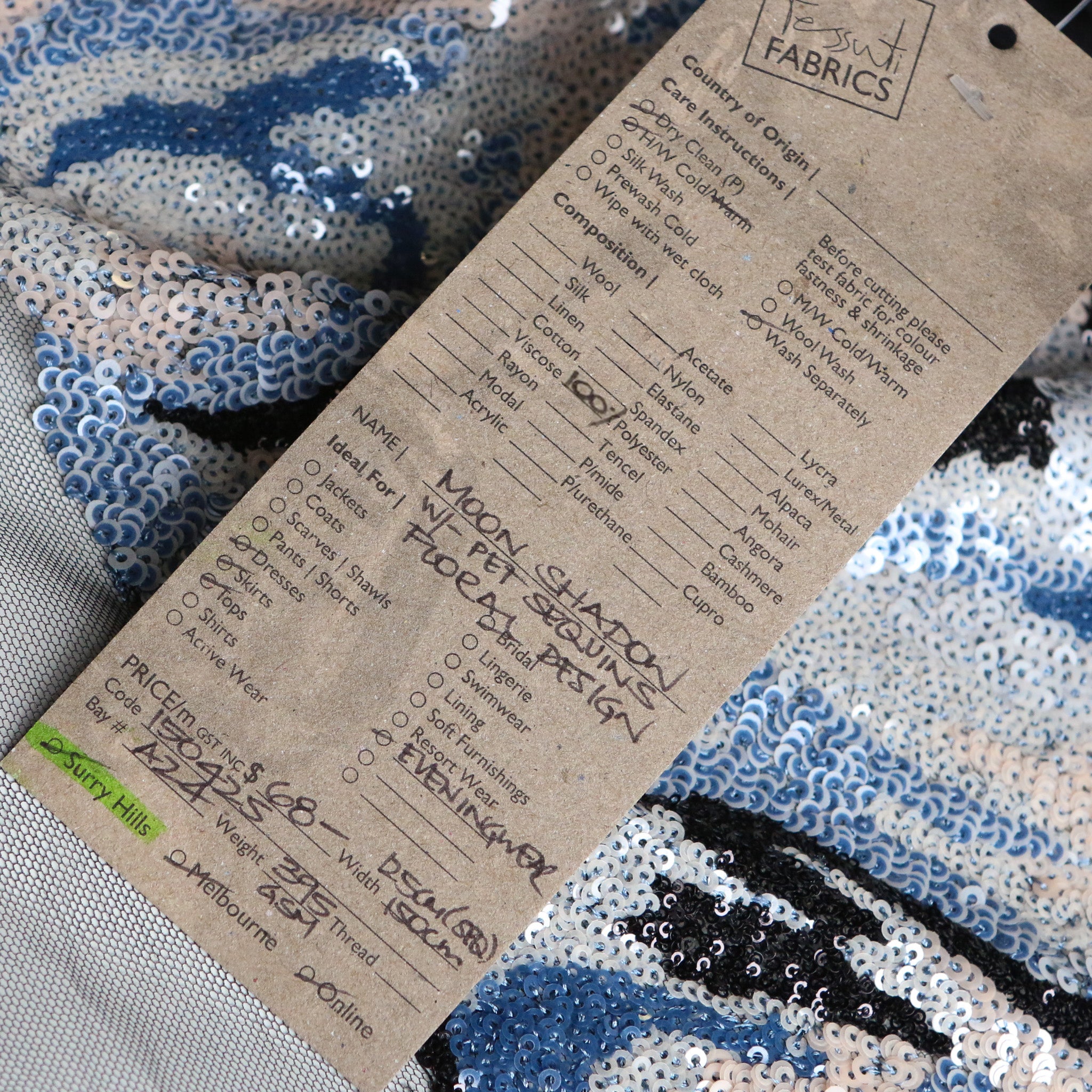 Width: 125cm sequinned