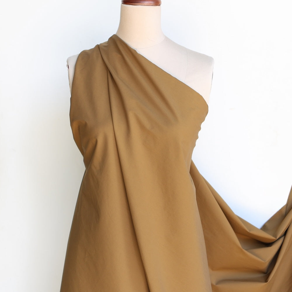 Japanese cognac typewriter woven high density 70% cotton 30% polyester crisp water repellant poplin with stretch
