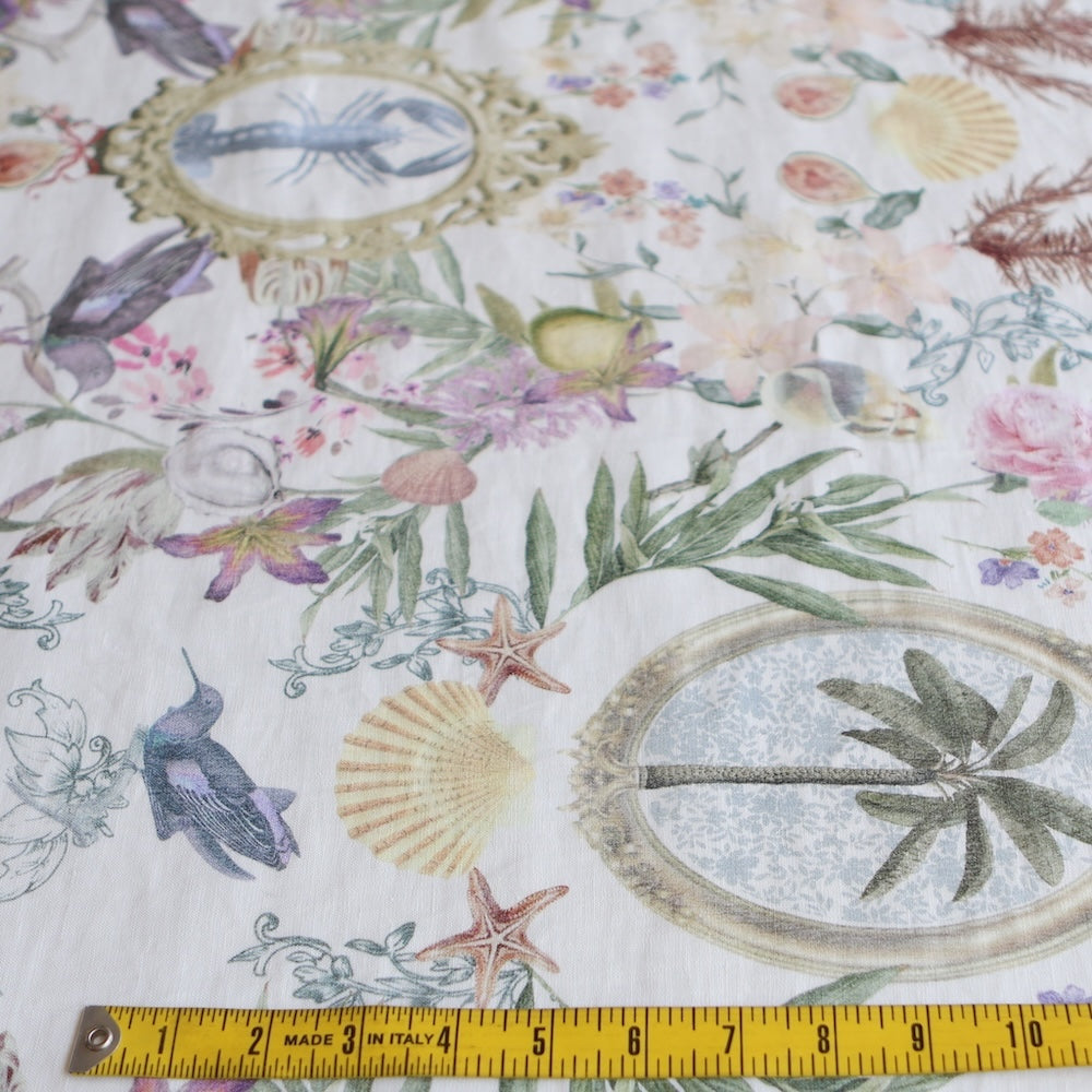 Pretty ivory/pastel floral/sea themed medium weight 100% linen