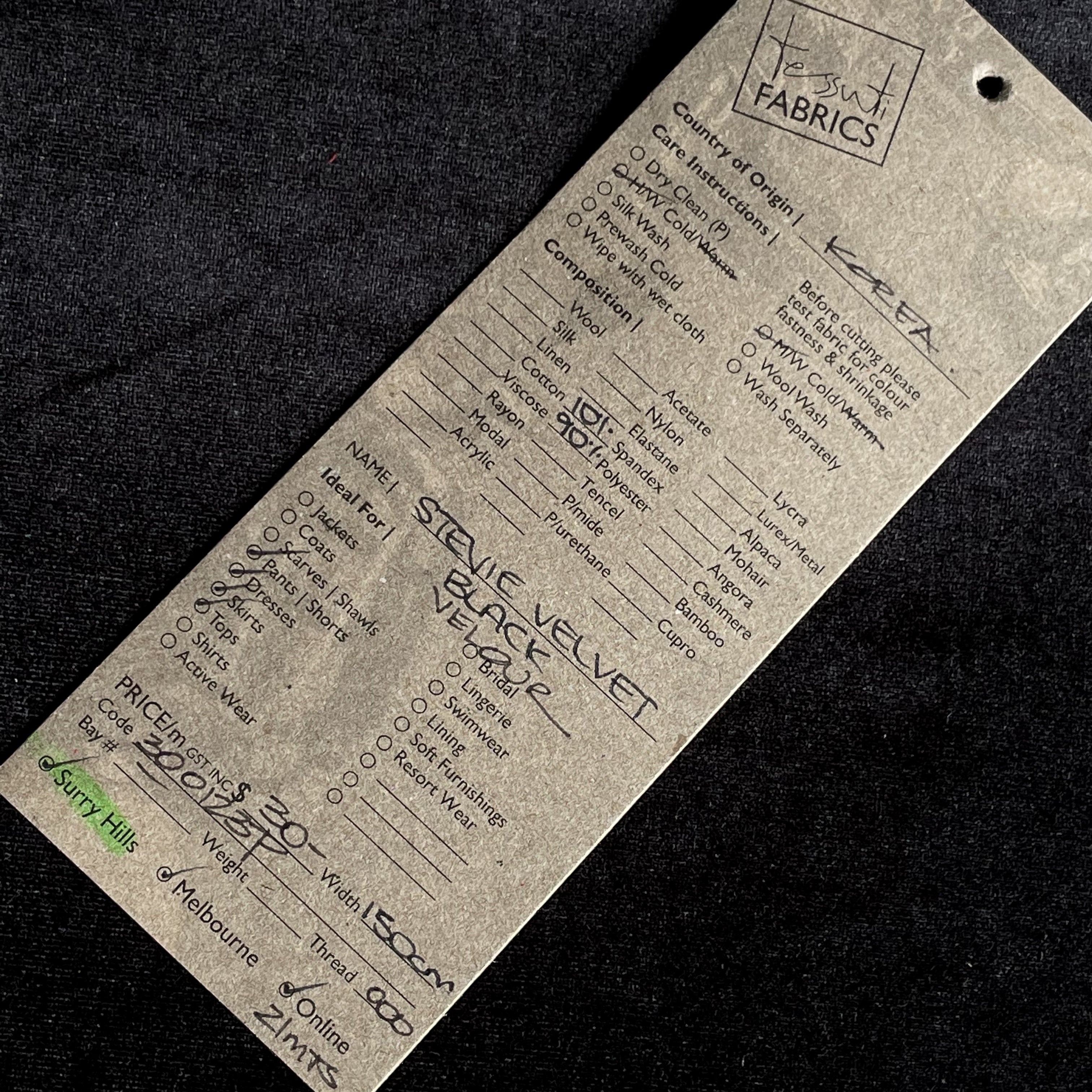 Stevie Velvet Black - Stretch Velour
