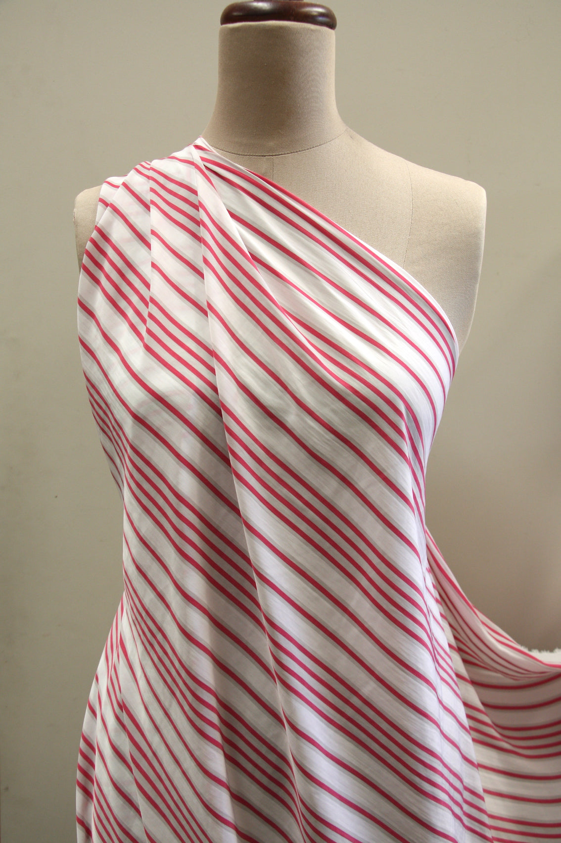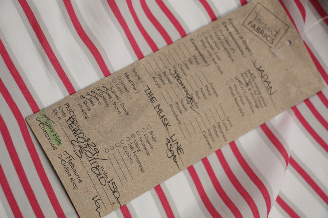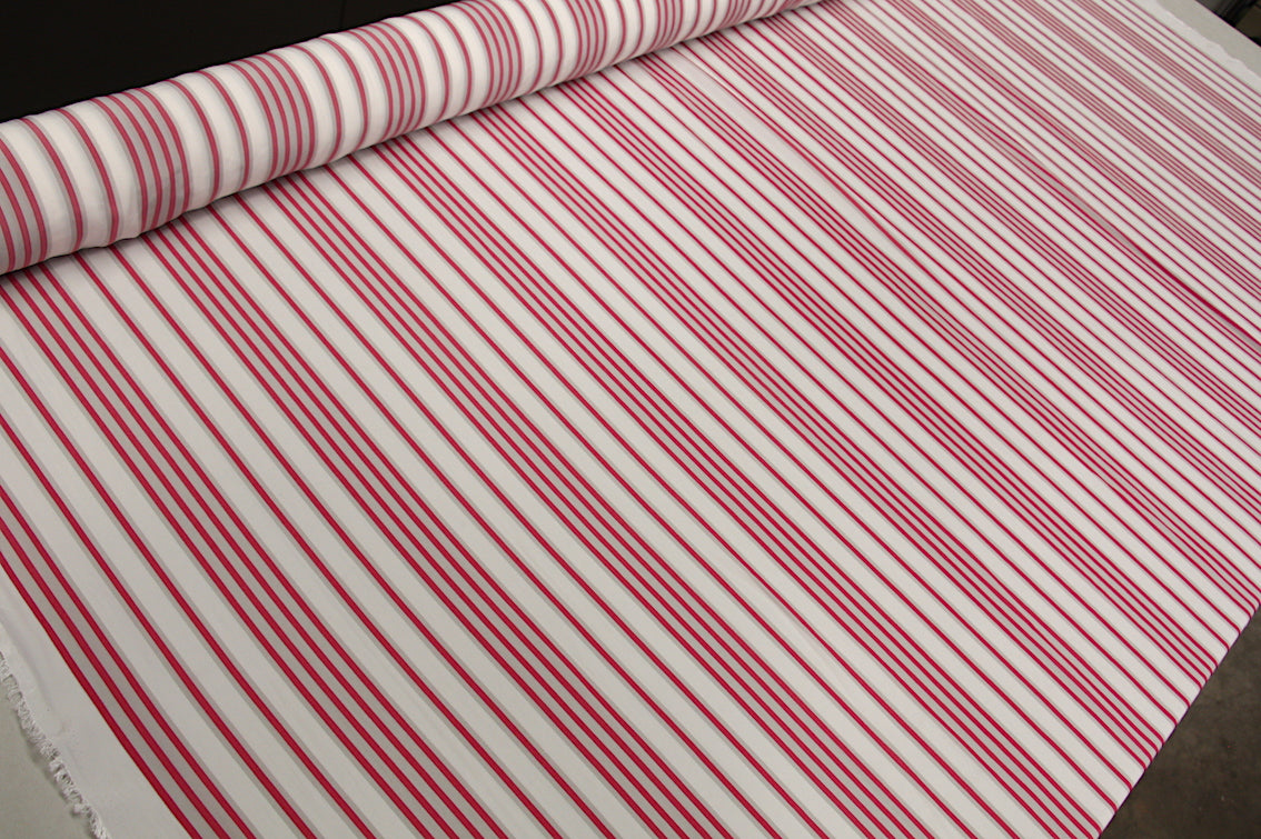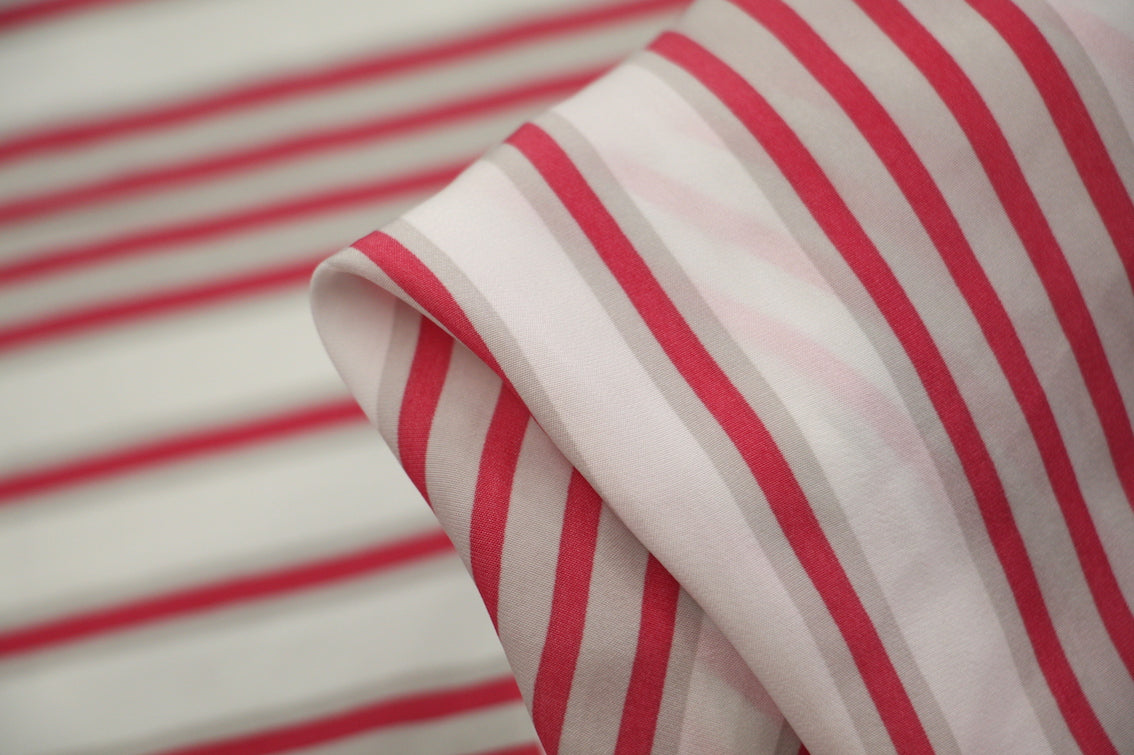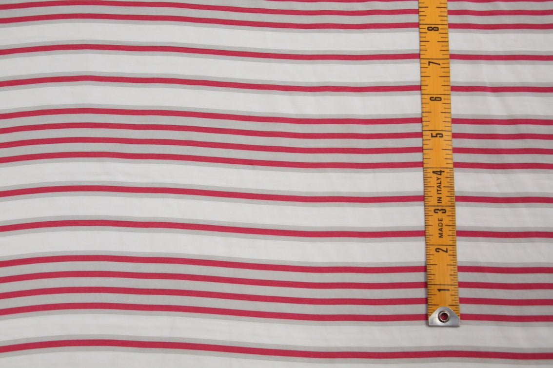 White/coral red/grey striped Japanese technical 100% polyester.