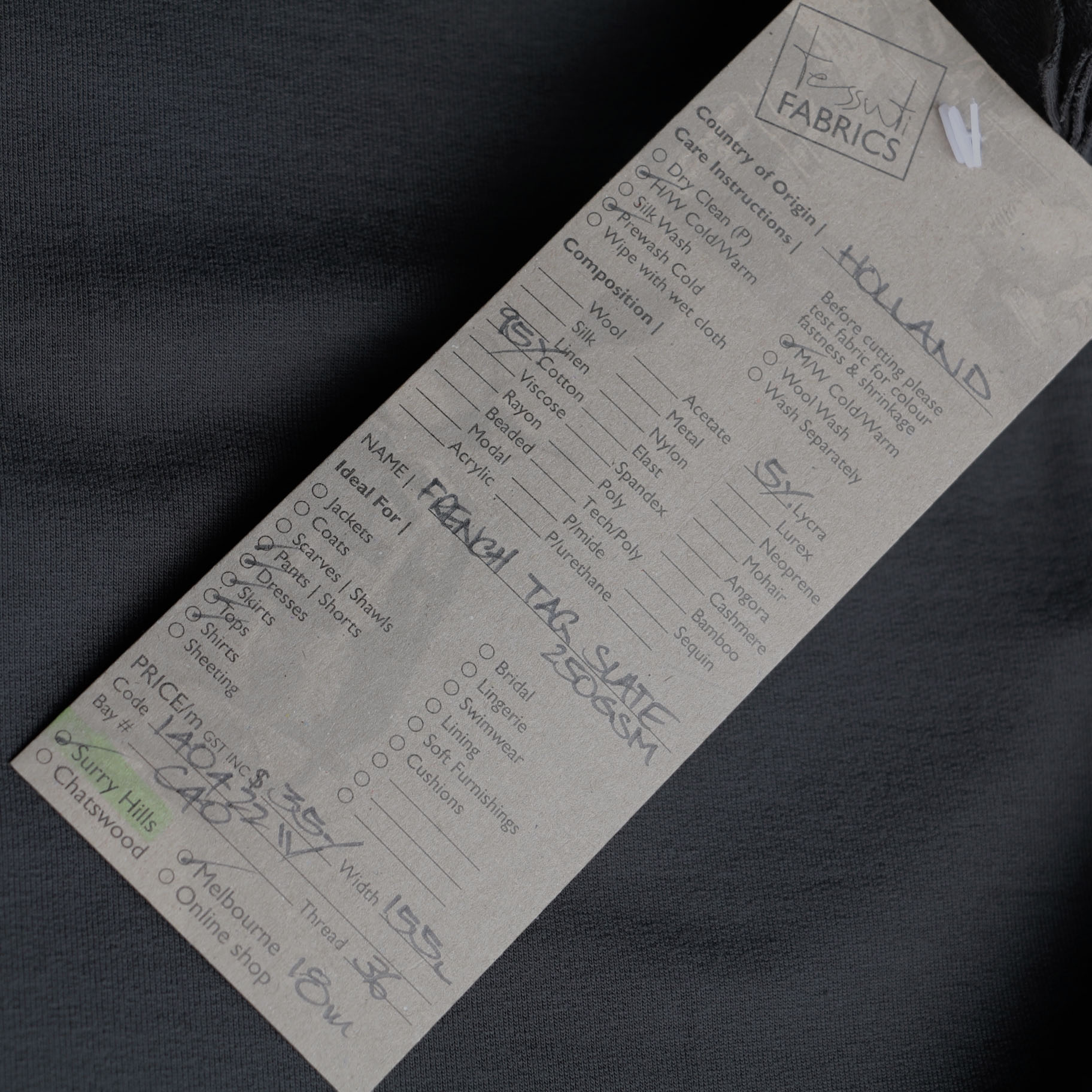 Slate grey 95% cotton 5% spandex loopback French terry knit