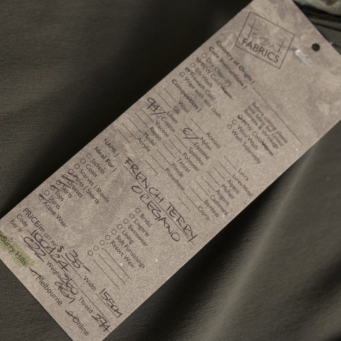 Oregano/tapenade 94% cotton 6% elastane loopback French terry knit