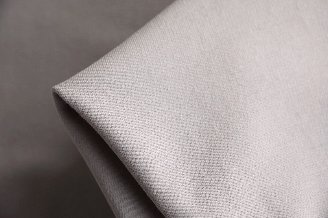 Silver grey 95% cotton 5% elastane brush fleece knit.