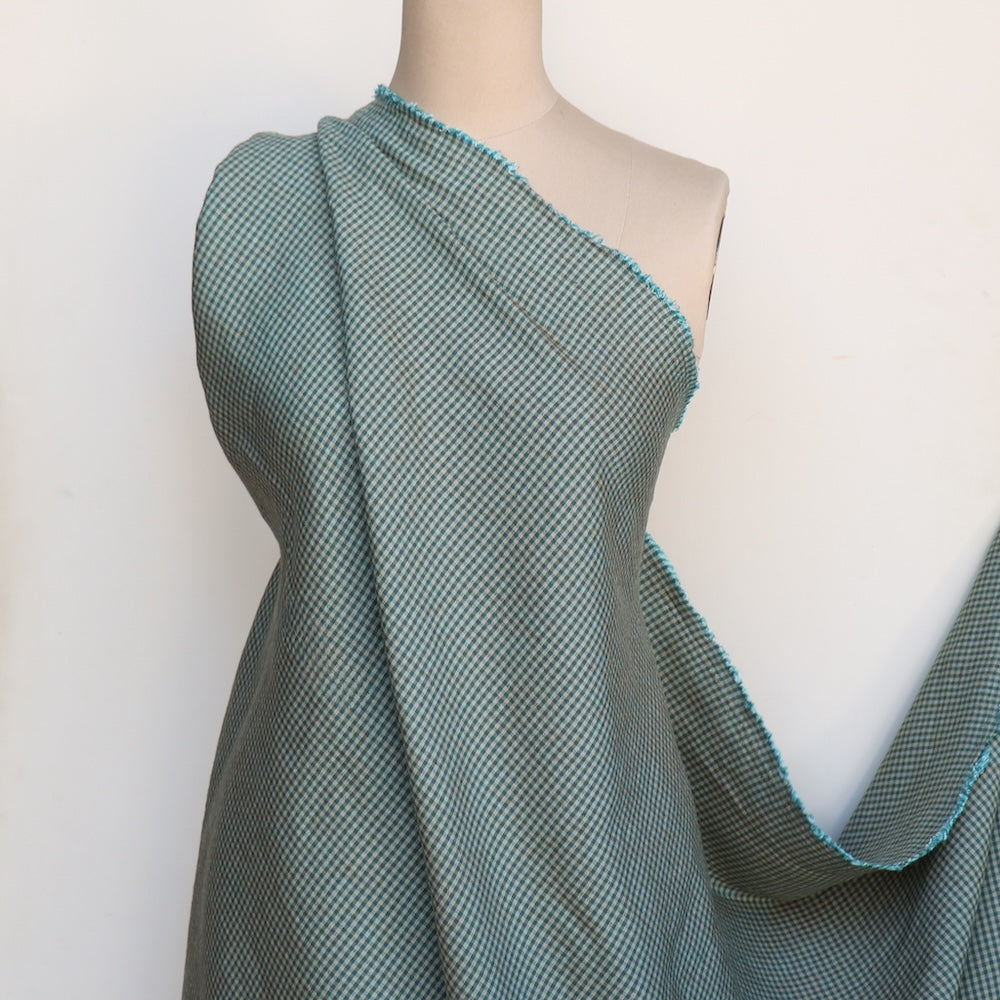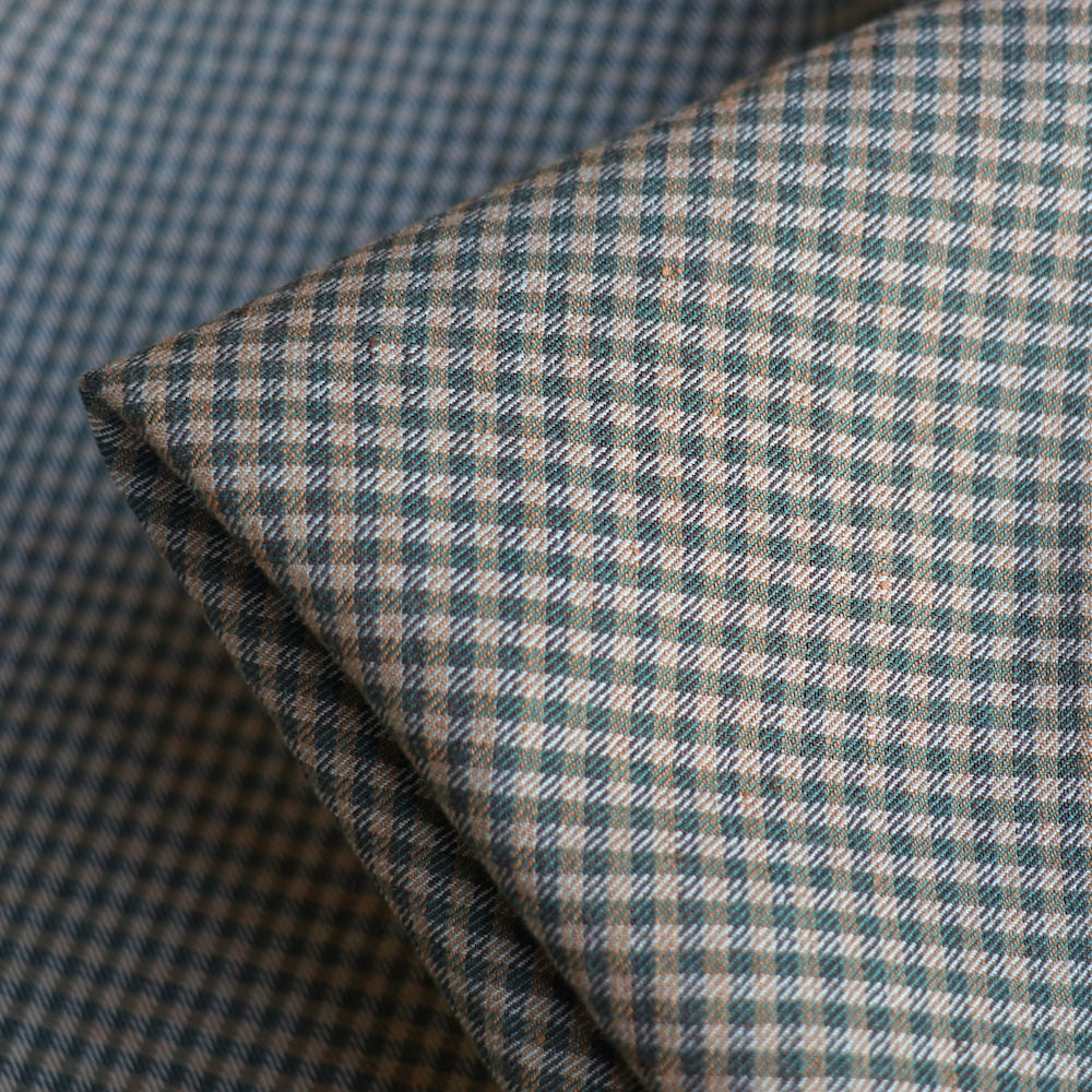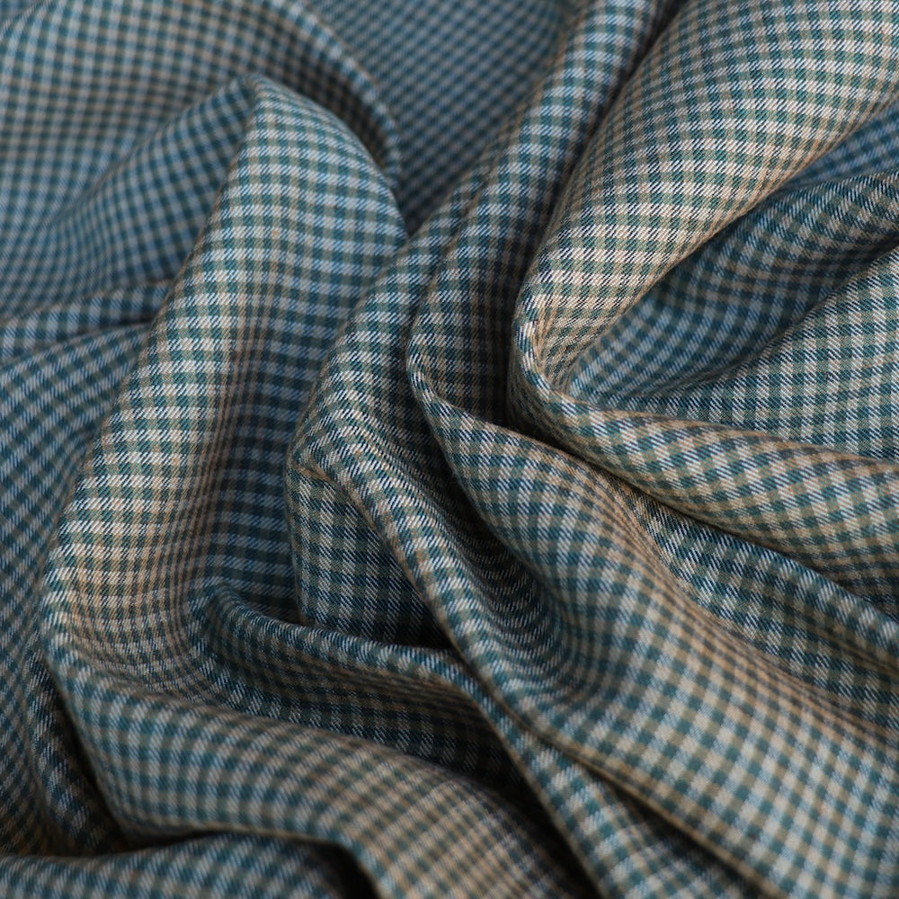 Italian blue/grey/camel yarn-dyed checked 53% linen 47% viscose