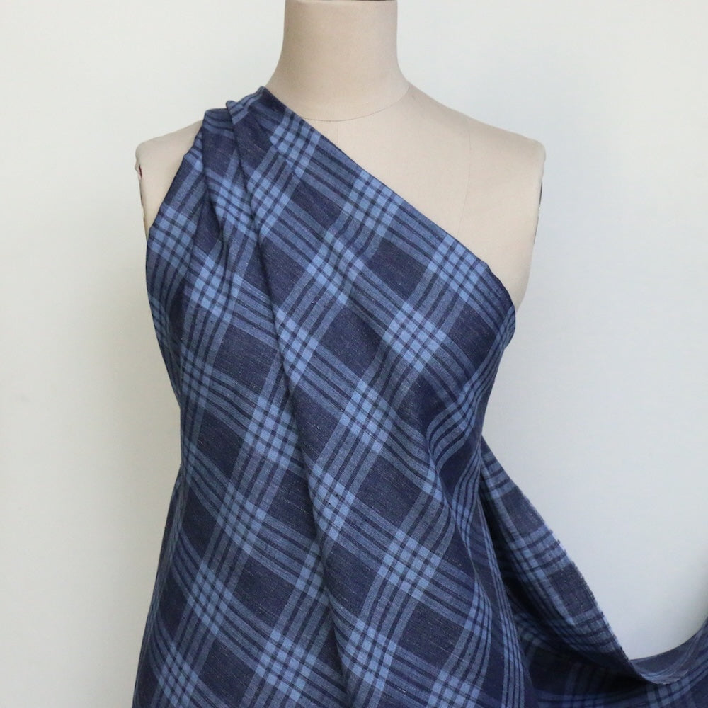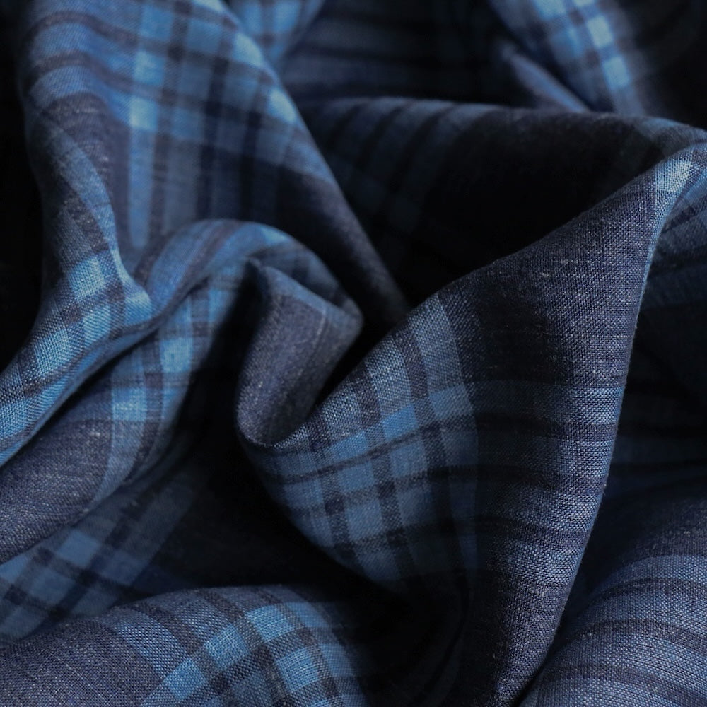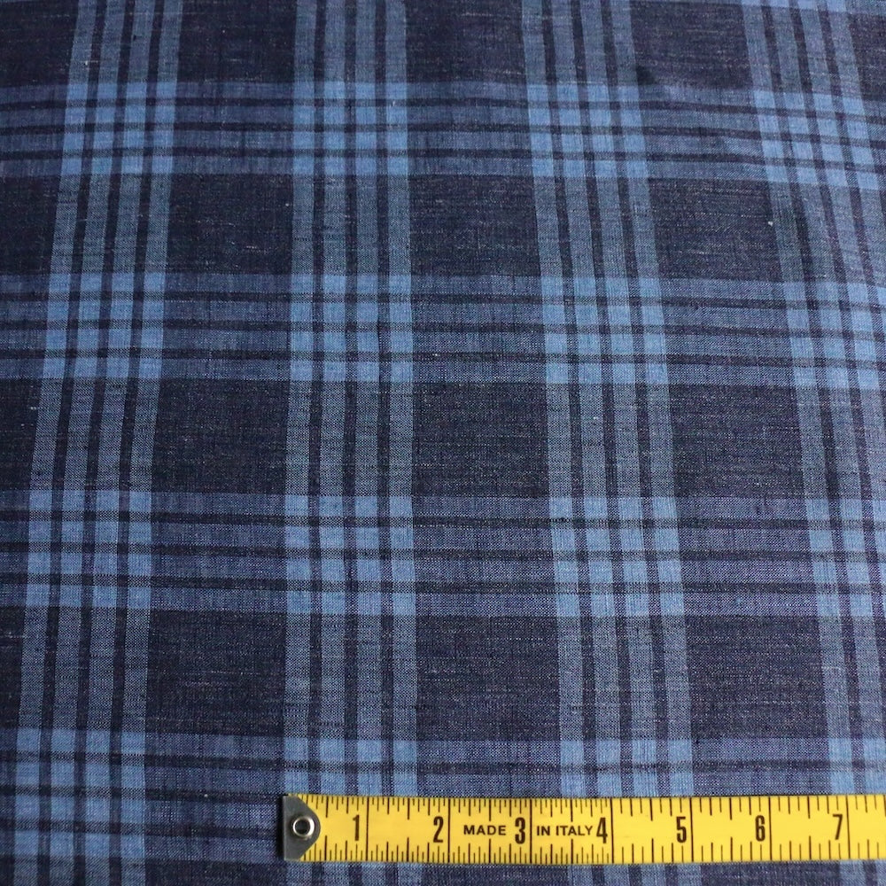 Italian blue/sky yarn-dyed checked 100% linen