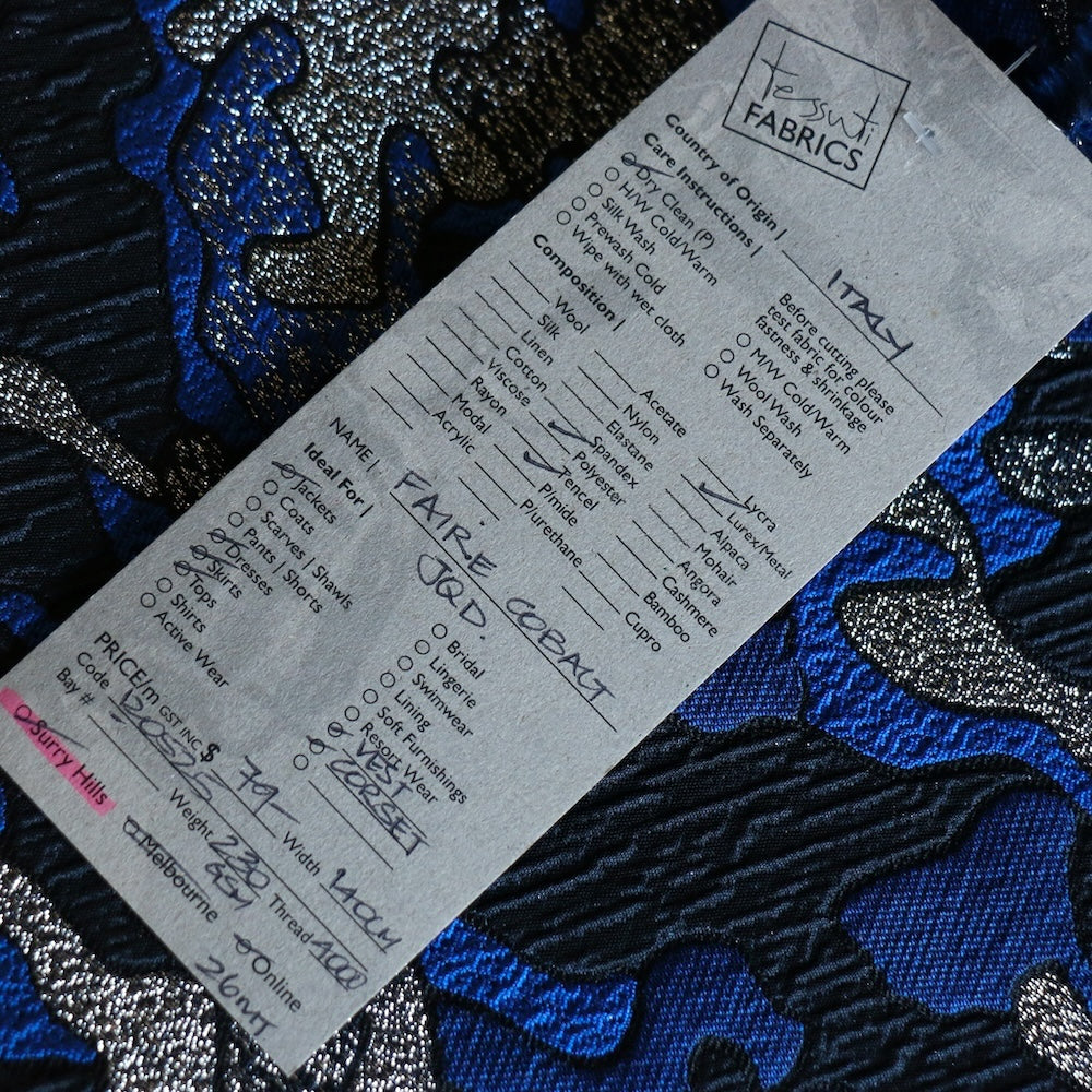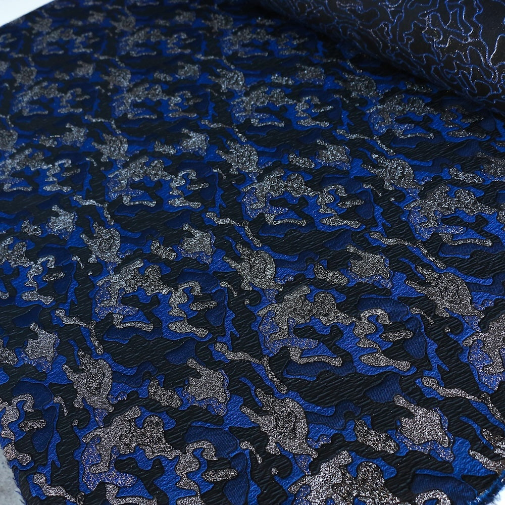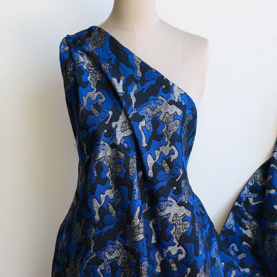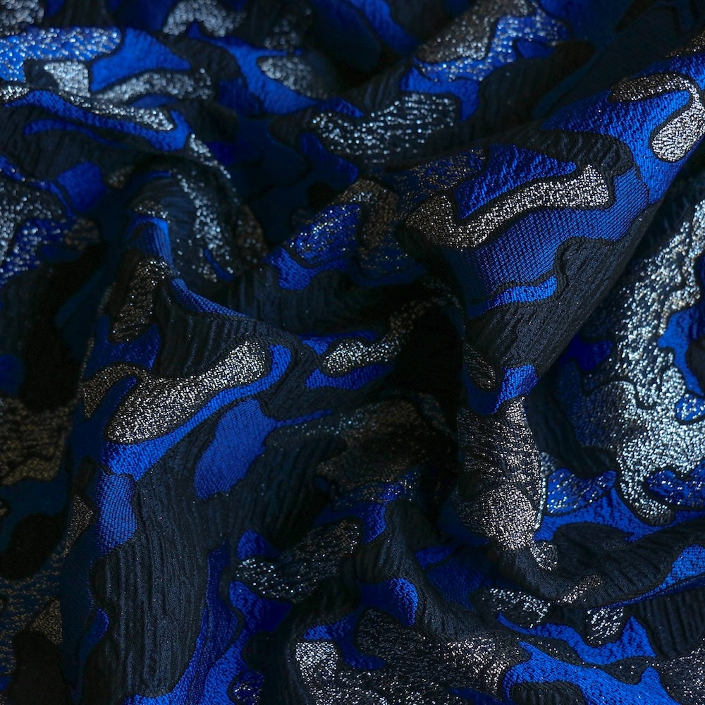 Italian designer black/silver/cobalt/bluette camouflage polyester/polyamide/lurex jacquard