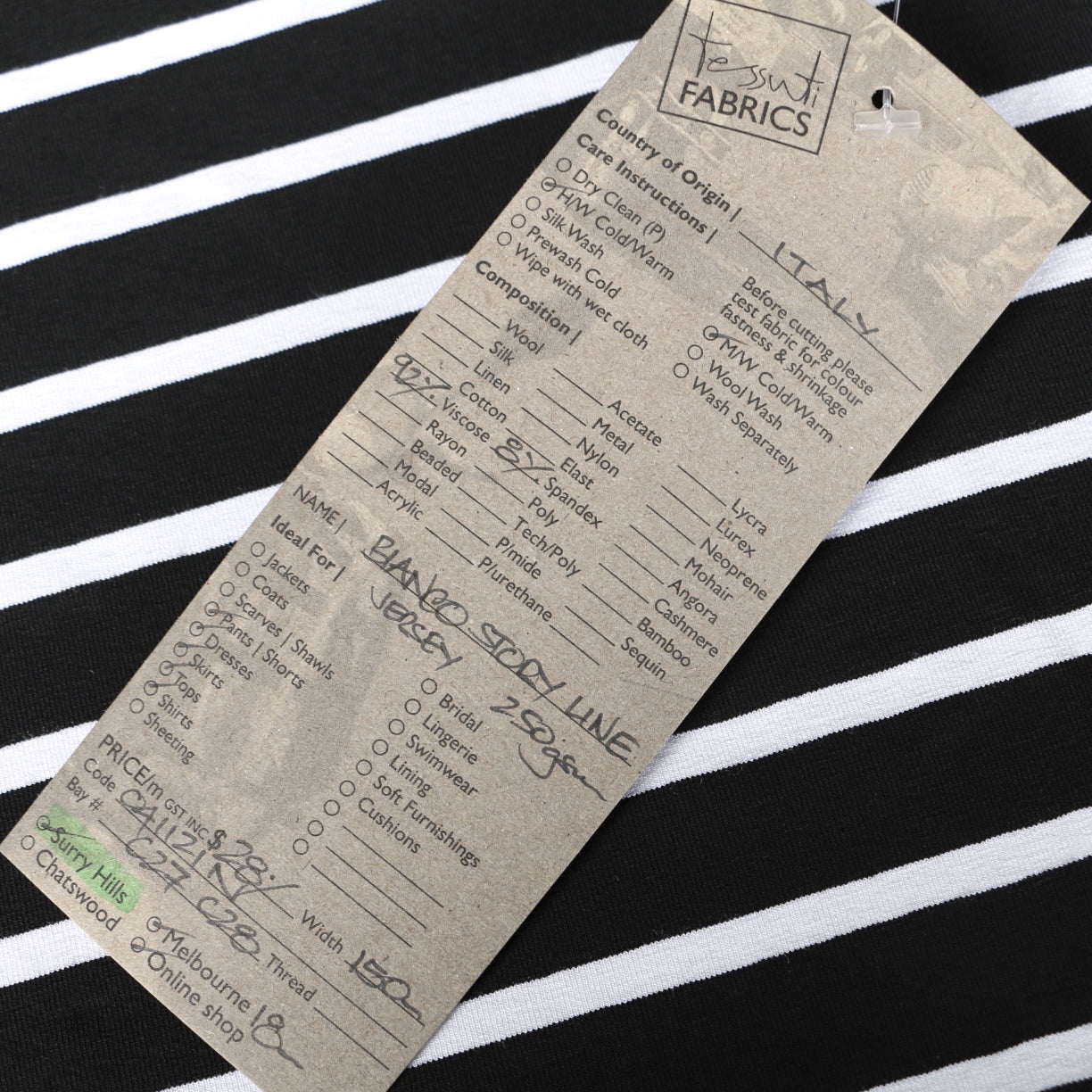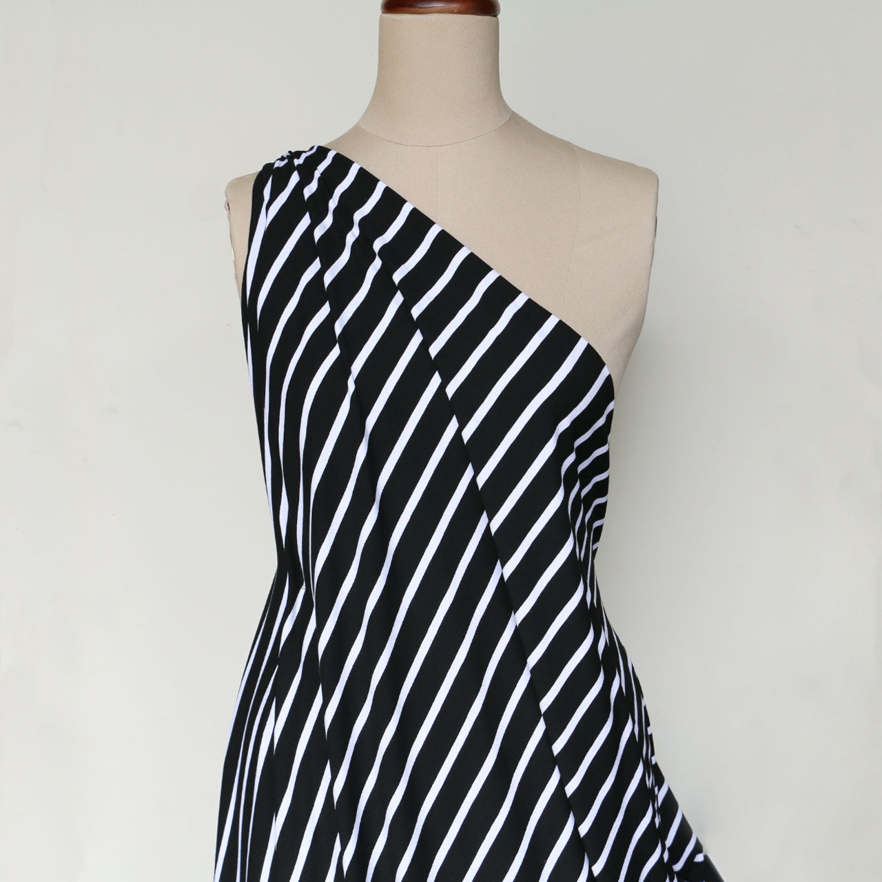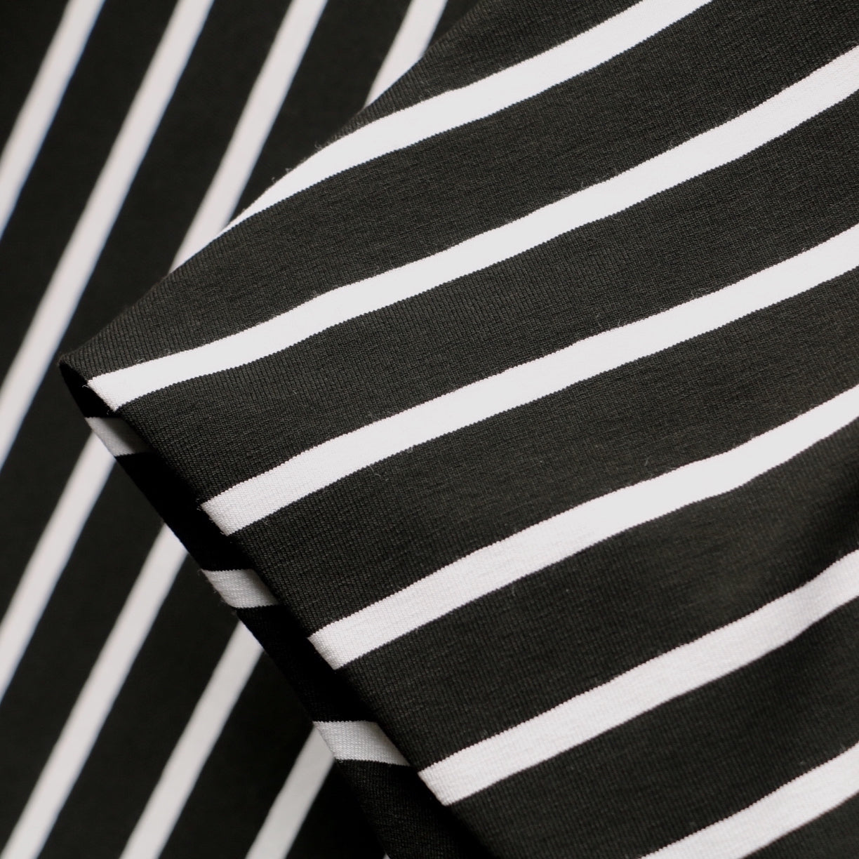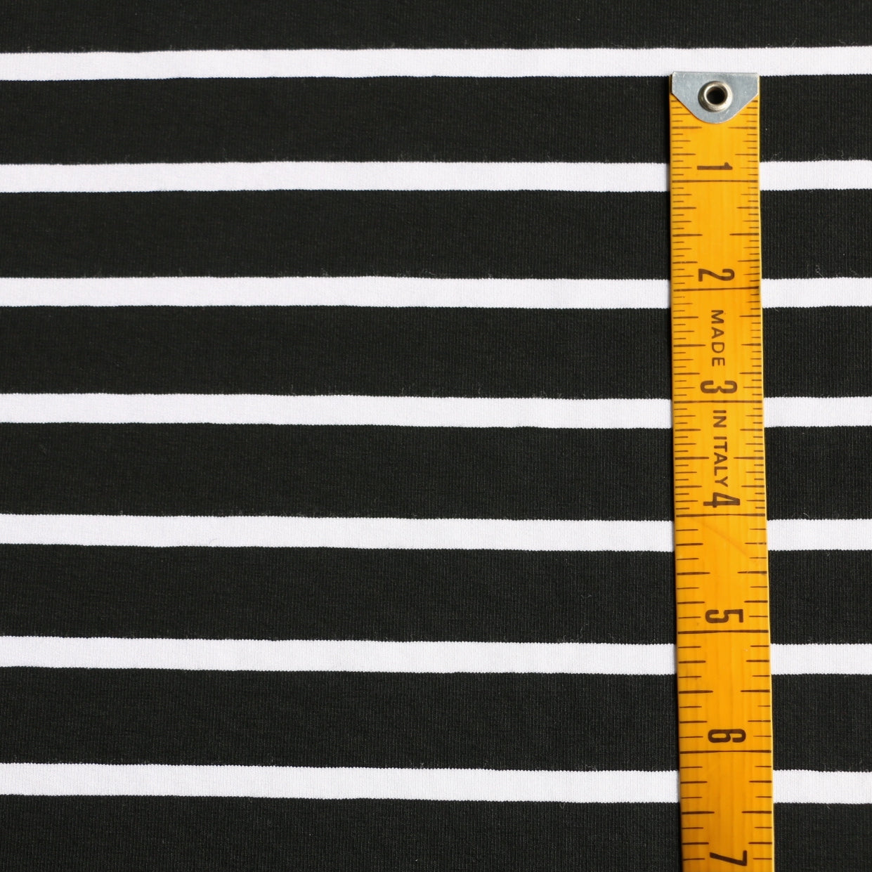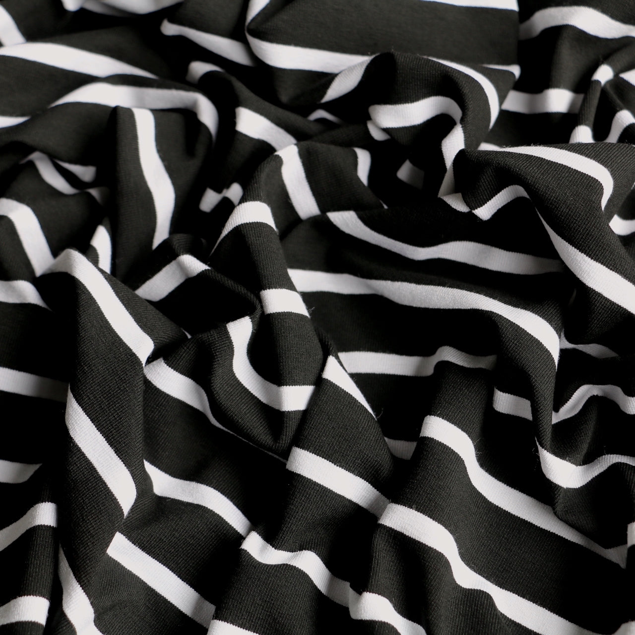 Designer end Italian black/white striped 92% viscose 8% spandex jersey knit
