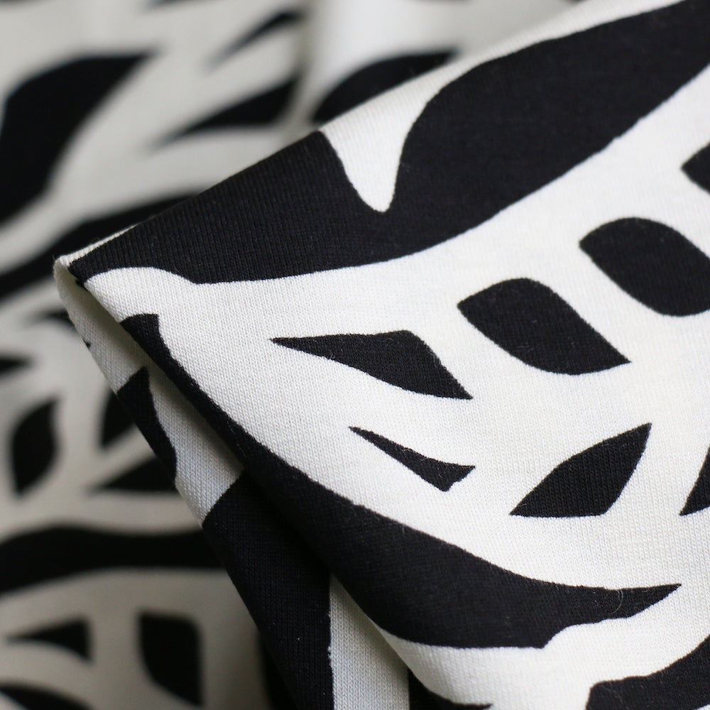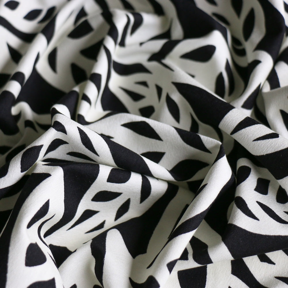 Italian black/off-white printed 94% viscose 6% elastane jersey knit