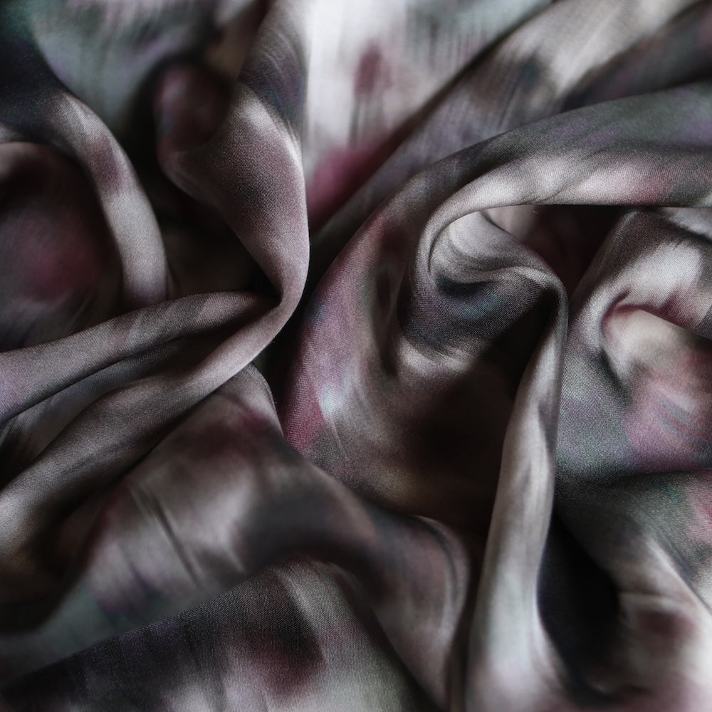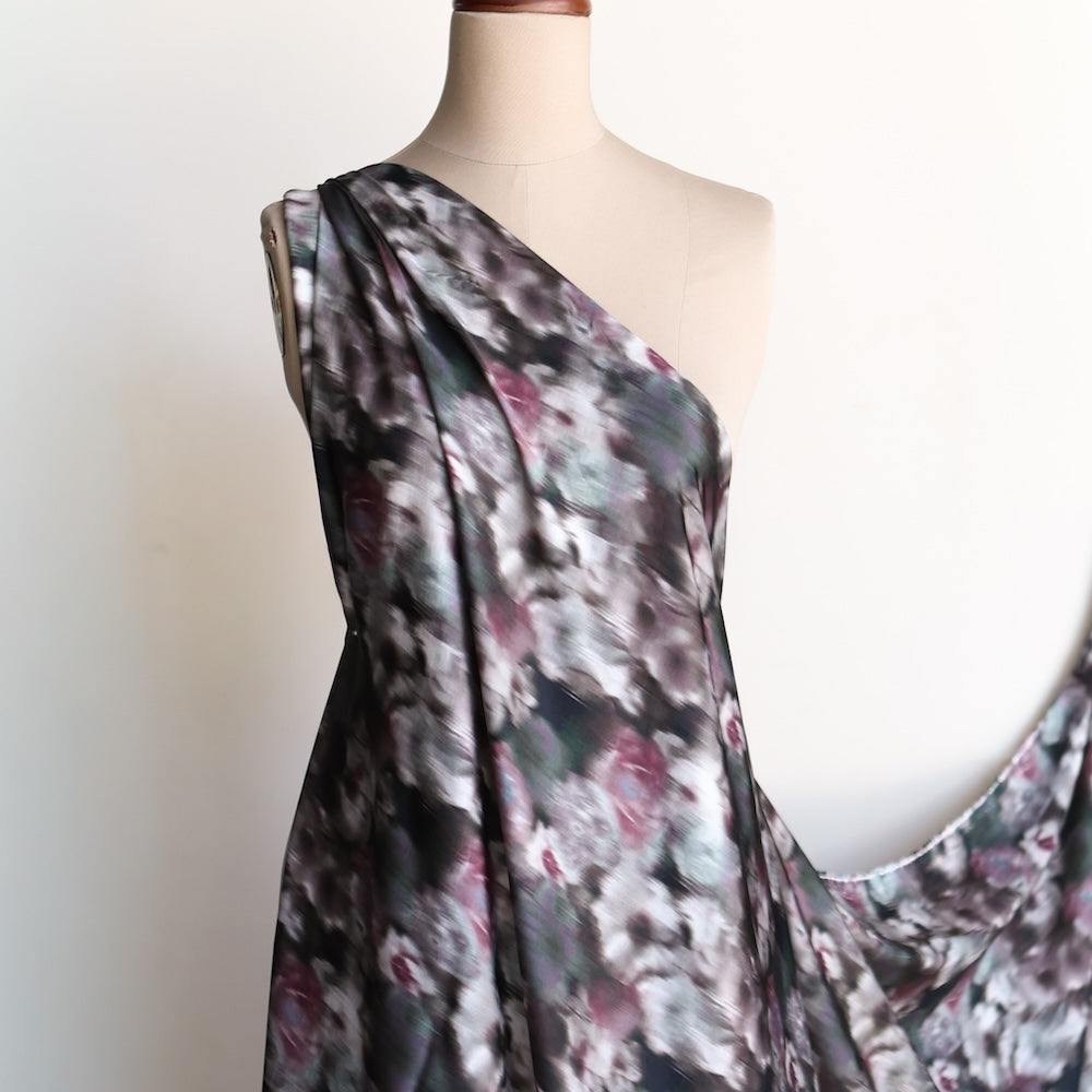 Liberty Fabrics plum/grey floral printed 54% Ecovero viscose 46% viscose satin