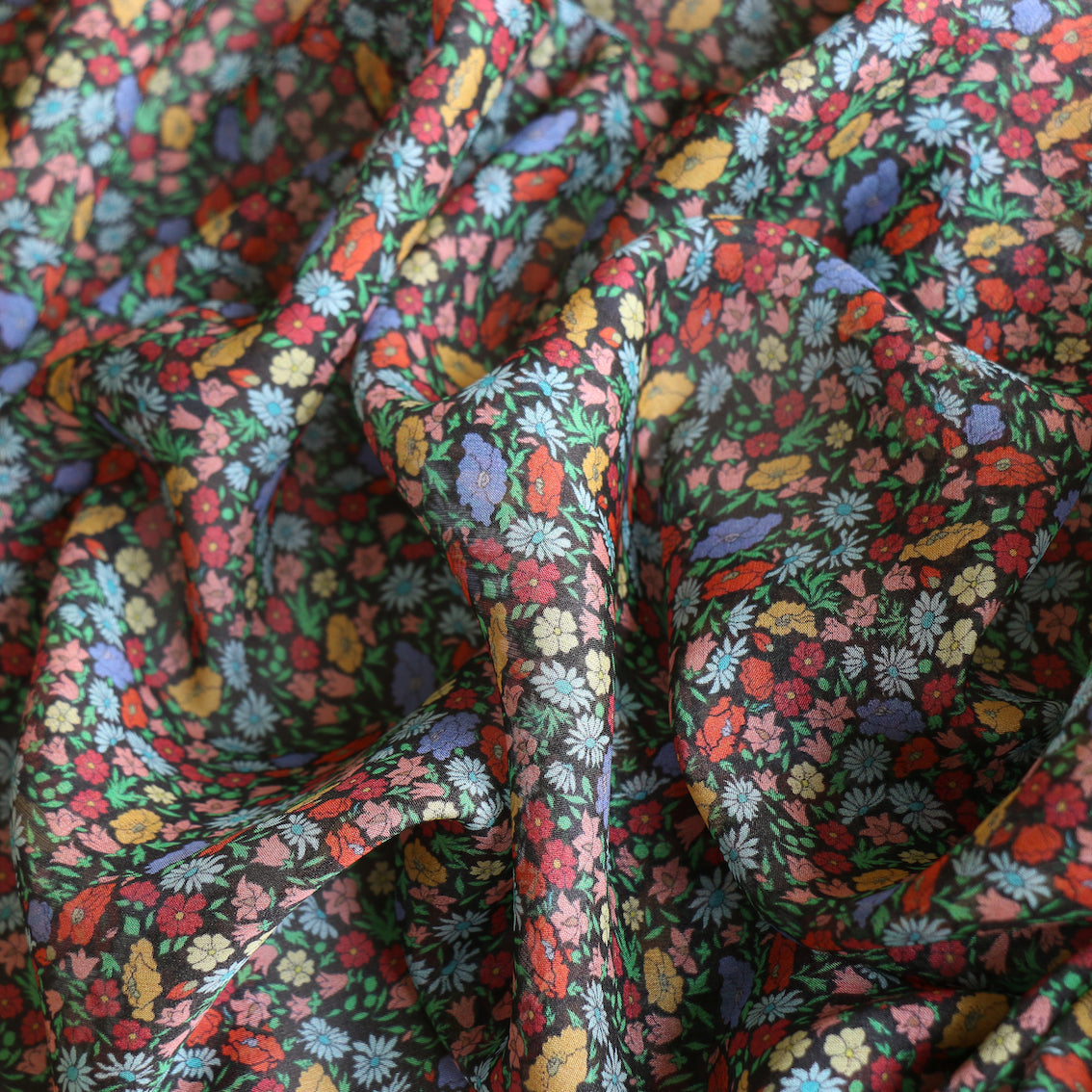 From the Liberty Fabrics Classics collection black/multi poppy floral printed 100% silk chiffon