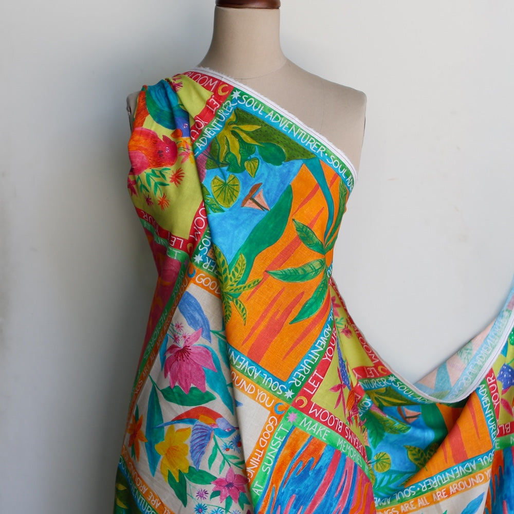 Tropical holiday printed 52% linen 48% viscose