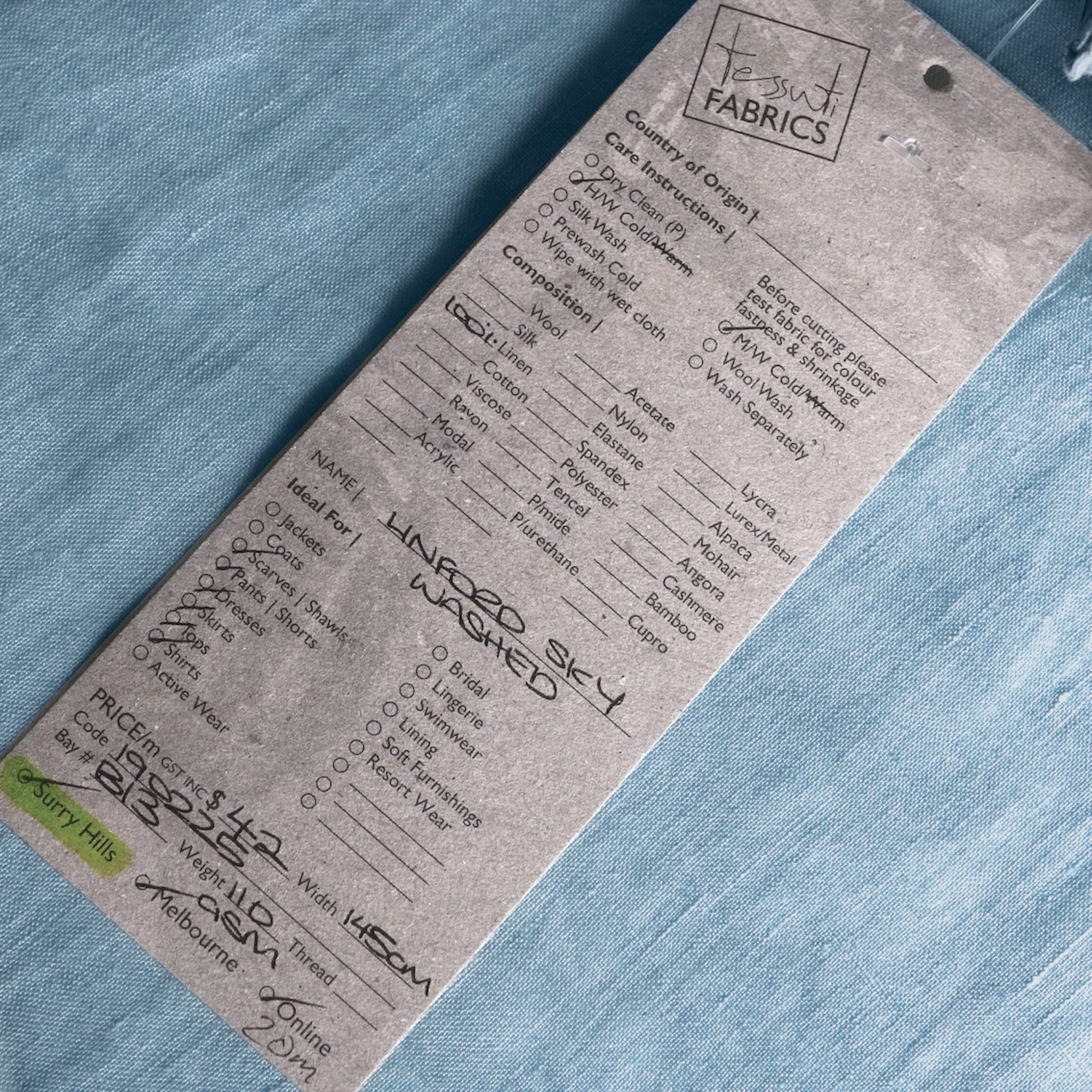 European Flax™ Certified sky blue light weight washed 100% linen.