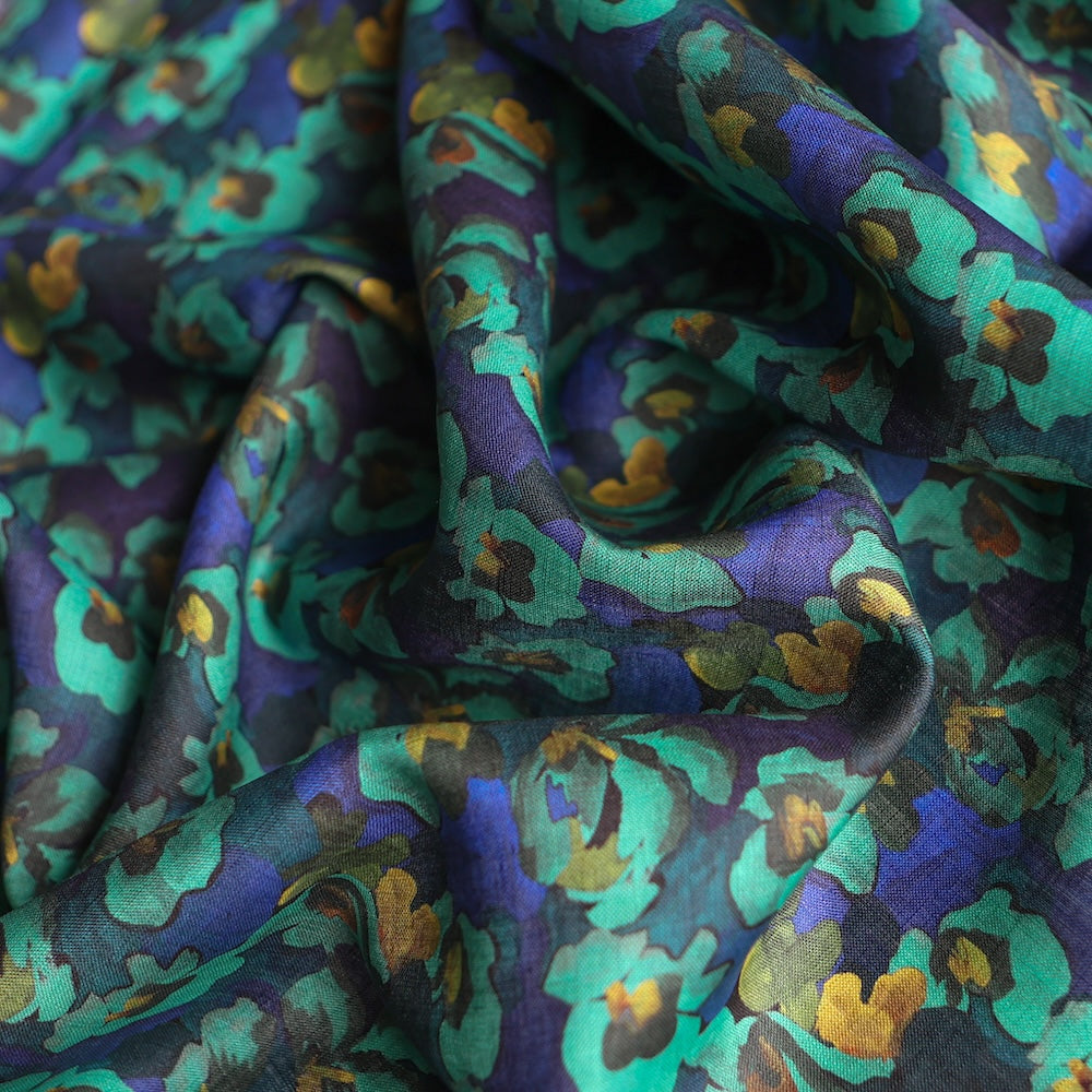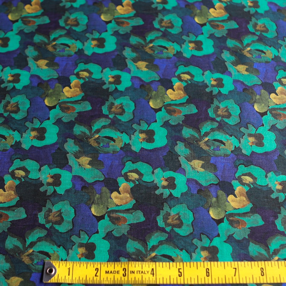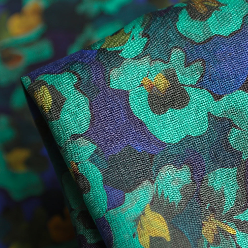 Liberty turqouise/blue coloured digitally printed floral 100% linen