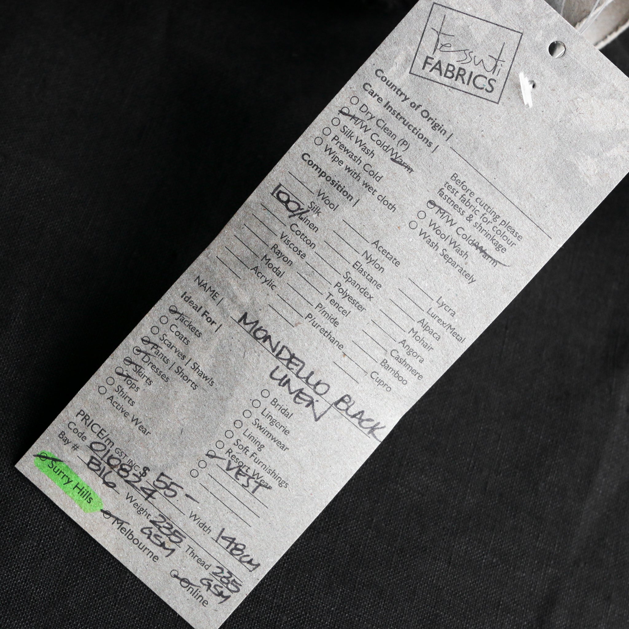 Mondello Black Linen - Heavy Weight